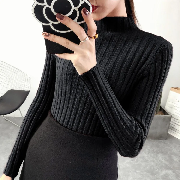 Свитер женский трикотажный в рубчик, с длинным рукавом, Осень-зима 2020