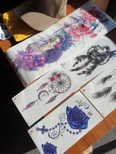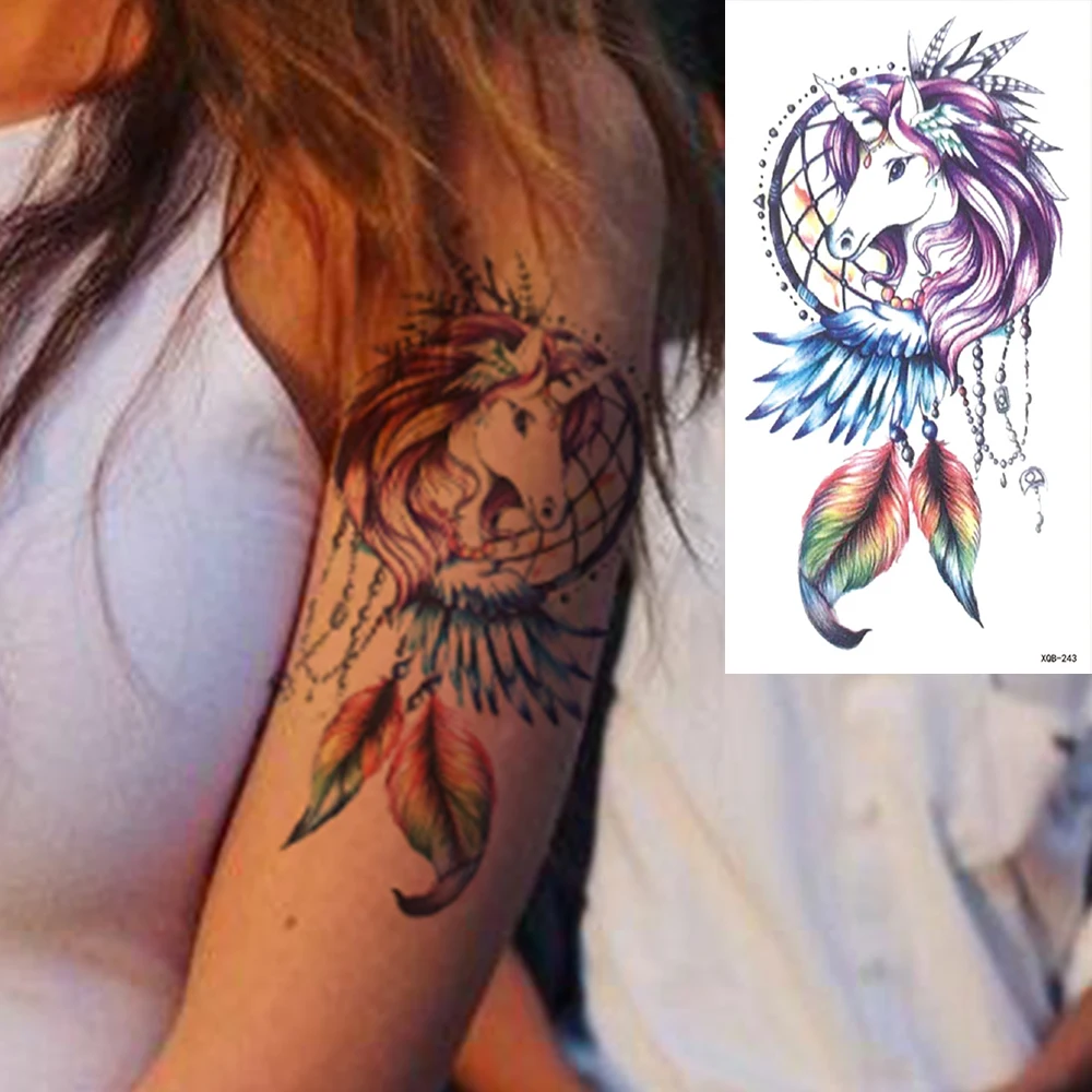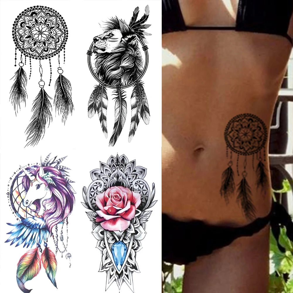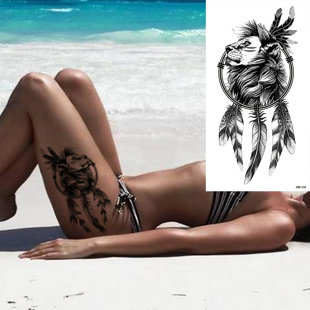 Татуировка Временная водостойкая для женщин, наклейка-Ловец снов, флеш-татуировки, Лев, цветы, боди-арт, рука, искусственное тату