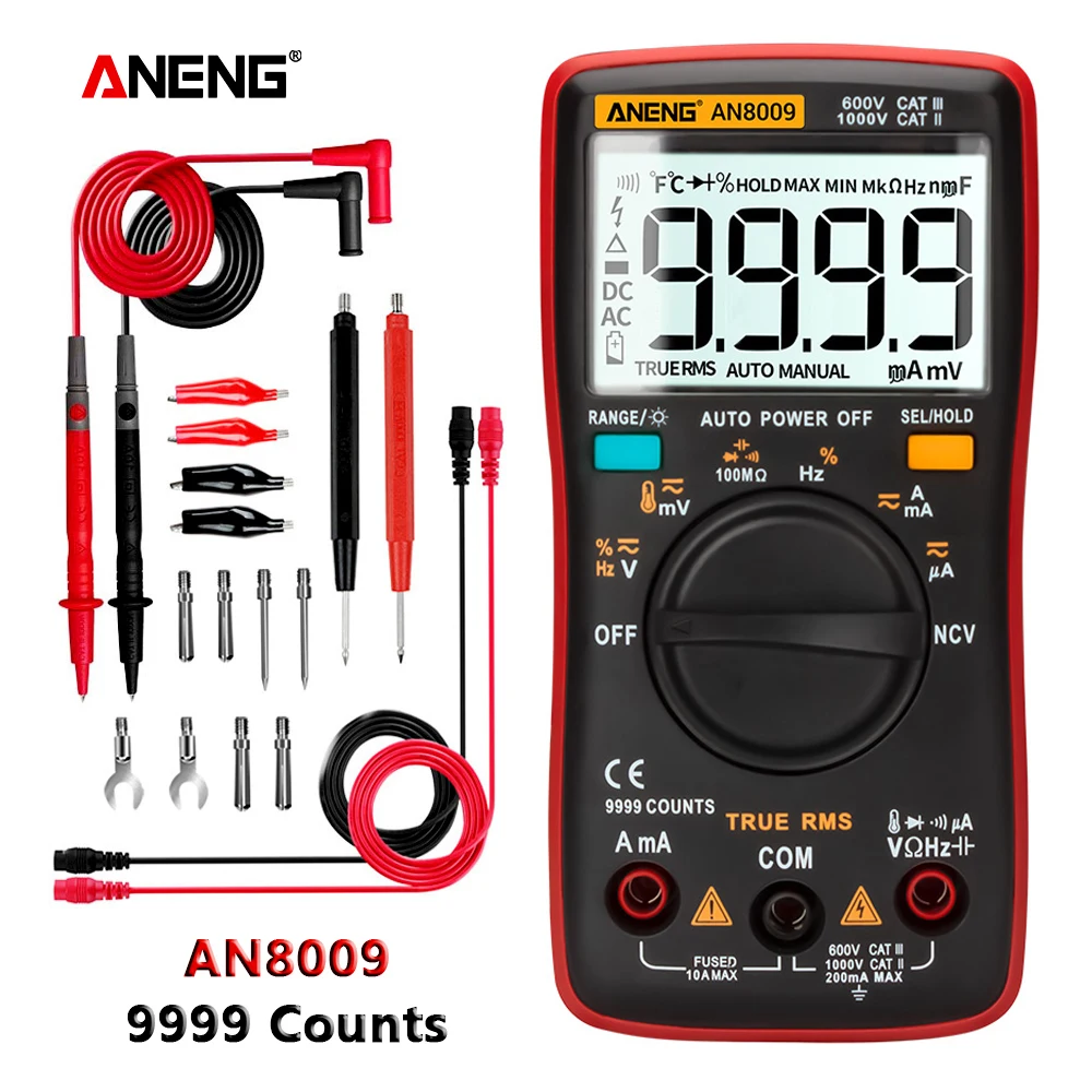 Цифровой мультиметр ANENG AN800809, 9999 отсчетов, транзистор, True...