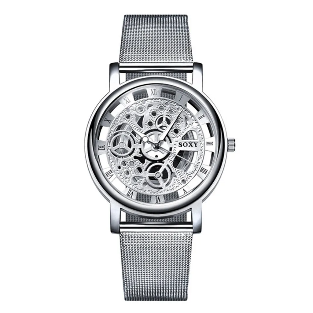 Модные часы, серебристые, золотистые, роскошные, полые, стальные часы для мужчин и женщин, унисекс, мужские кварцевые наручные часы, часы в стиле ретро для мужчин