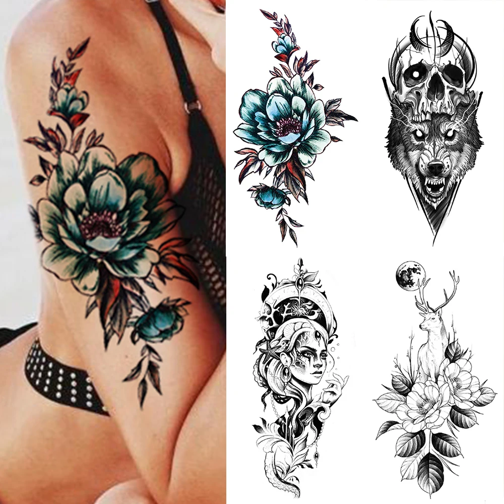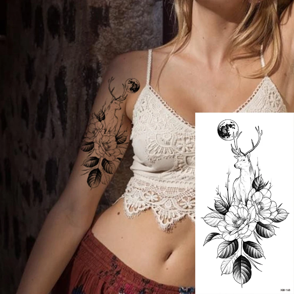 Водостойкая Временная тату-наклейка, синяя Роза, единорог, флэш-тату, цветы, роза, луна, олень, боди-арт, руки, имитация рукава, тату для женщин