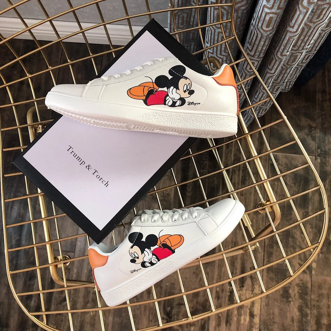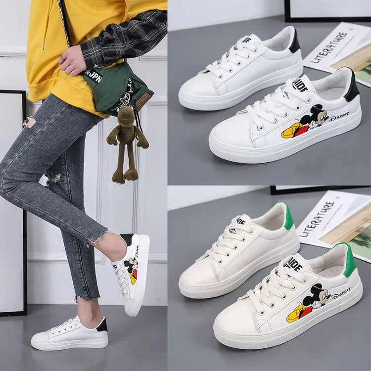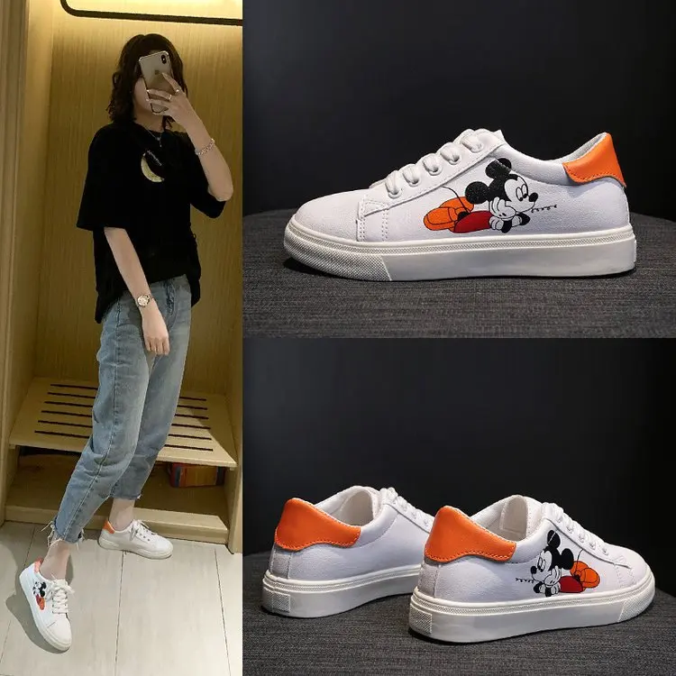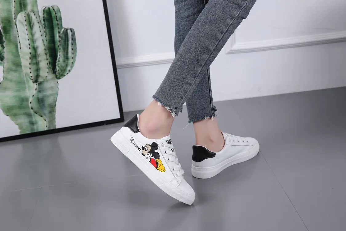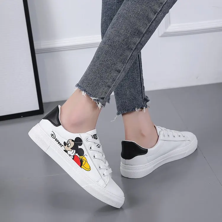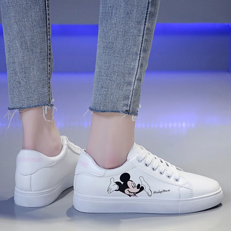Белые туфли Disney с Микки, дамские весенние туфли, новые туфли в Корейском стиле с Микки Маусом, Необычные модные туфли
