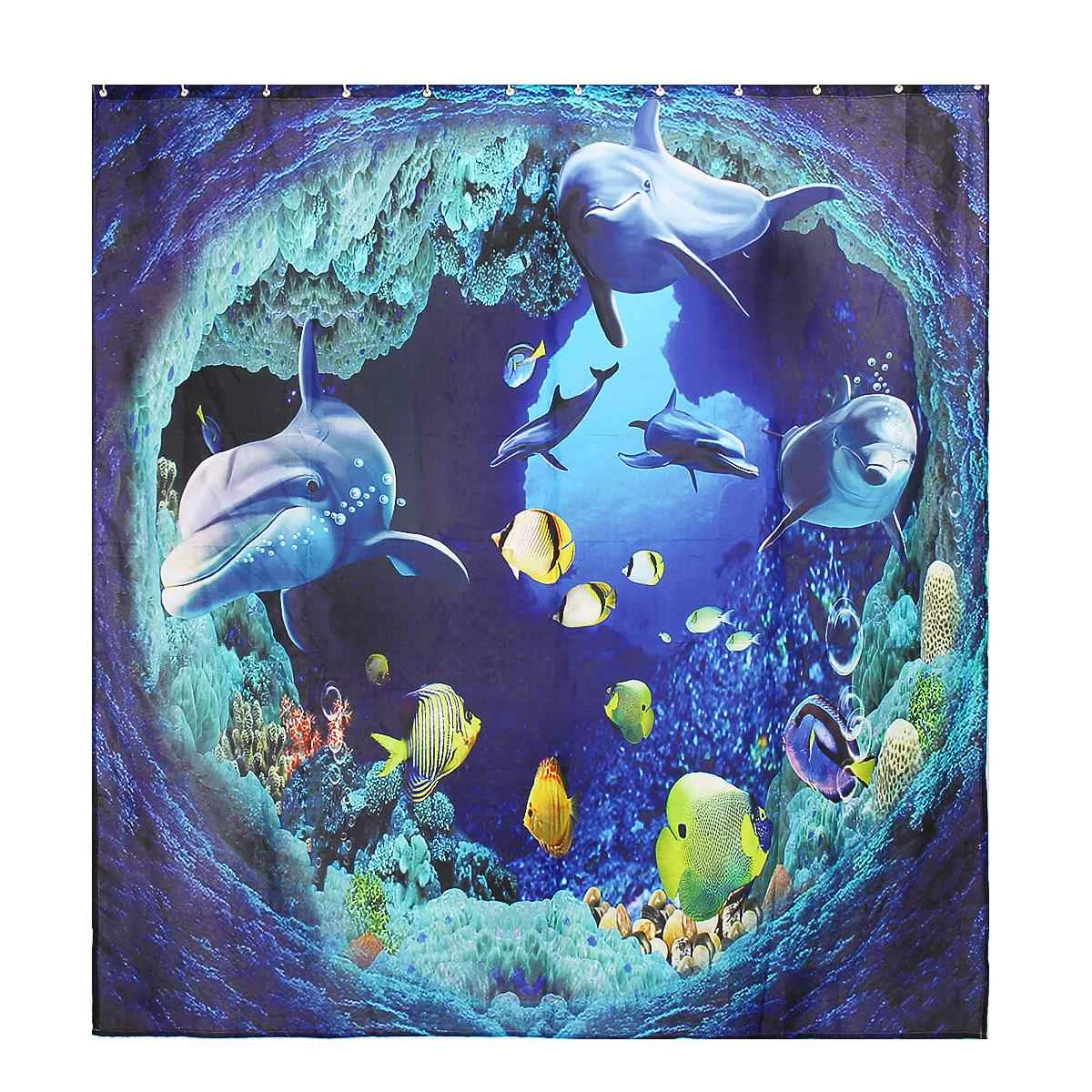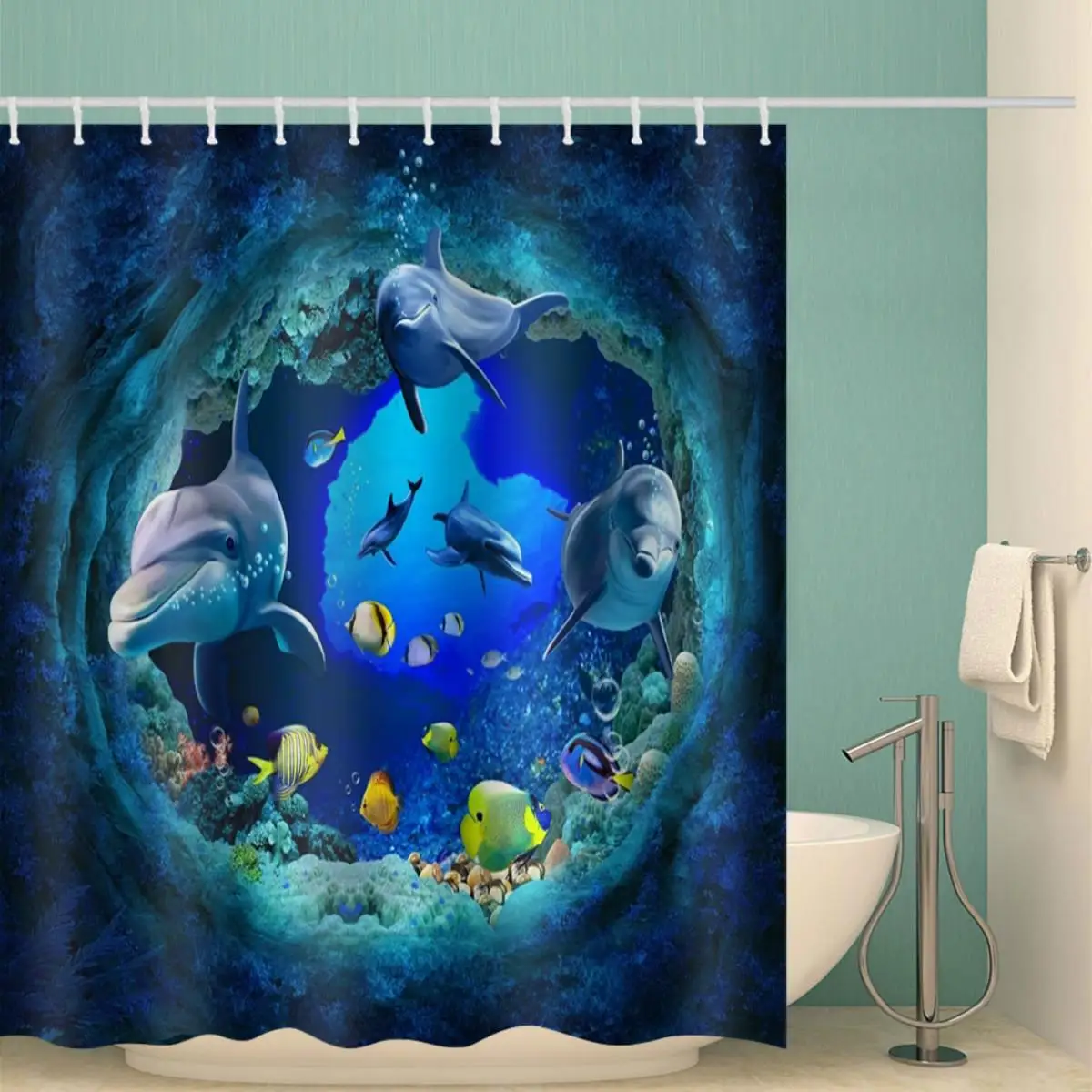 Водонепроницаемая занавеска для душа в ванную комнату, нескользящий Коврик для ванны с 3D рисунком дельфина, коврик для пьедестал, накладка на пол, крышка для туалета