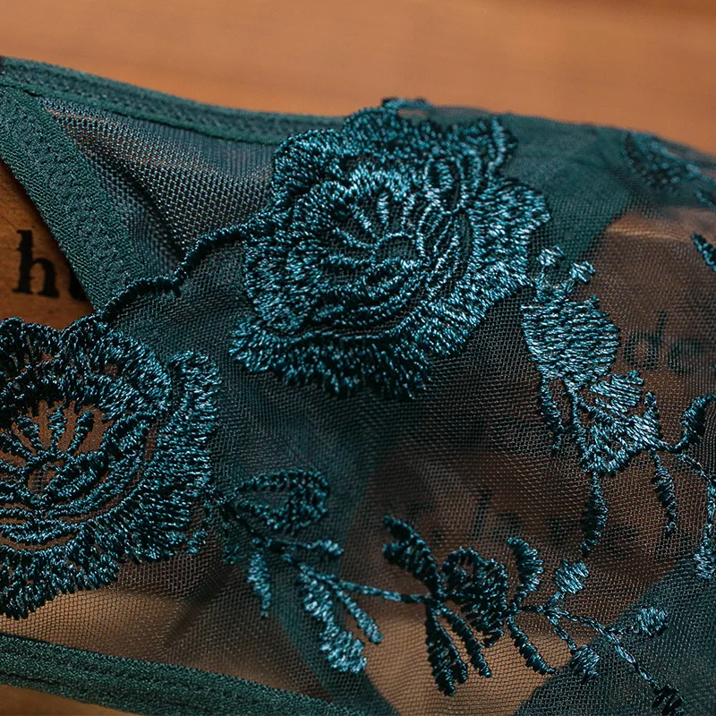 Трусики-стринги женские кружевные с низкой талией и цветочной вышивкой
