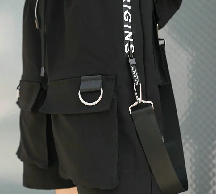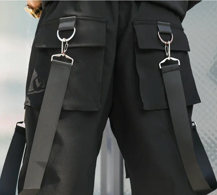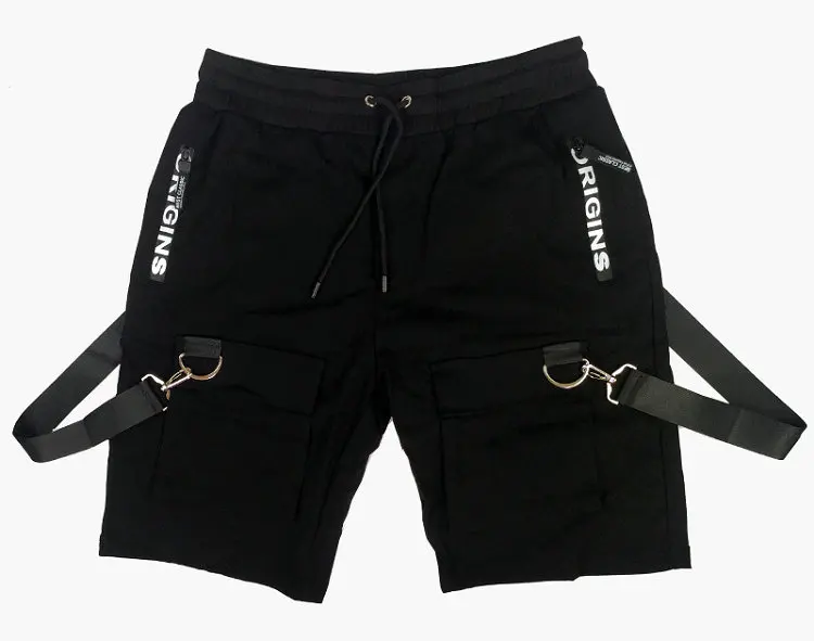 Мужские летние шорты в стиле хип-хоп, уличная одежда с черными лентами 2020, мужские шорты-бермуды с несколькими карманами в стиле панк, повседневные мужские шорты до колена