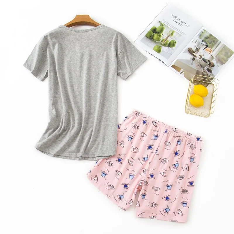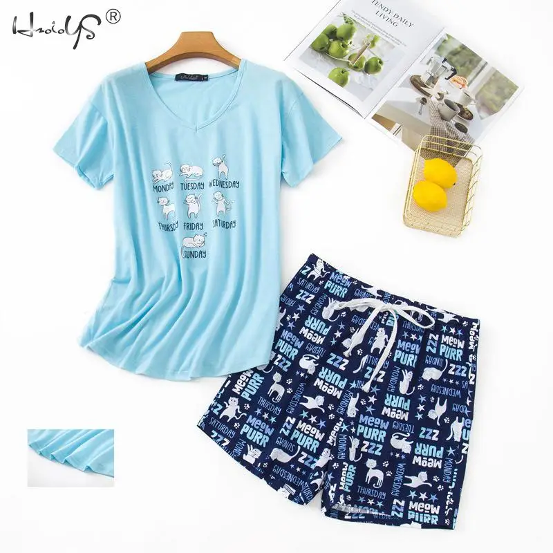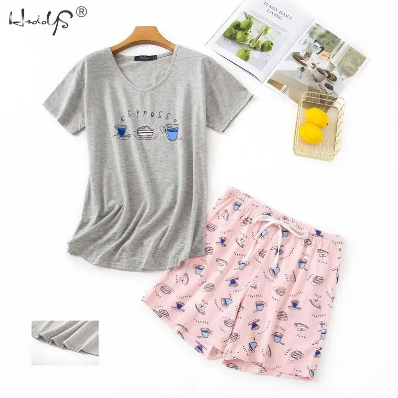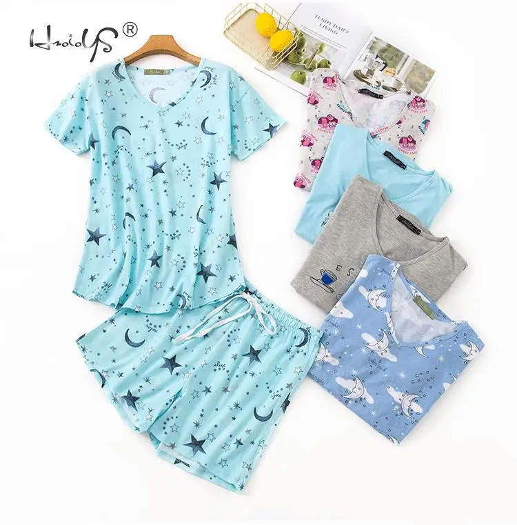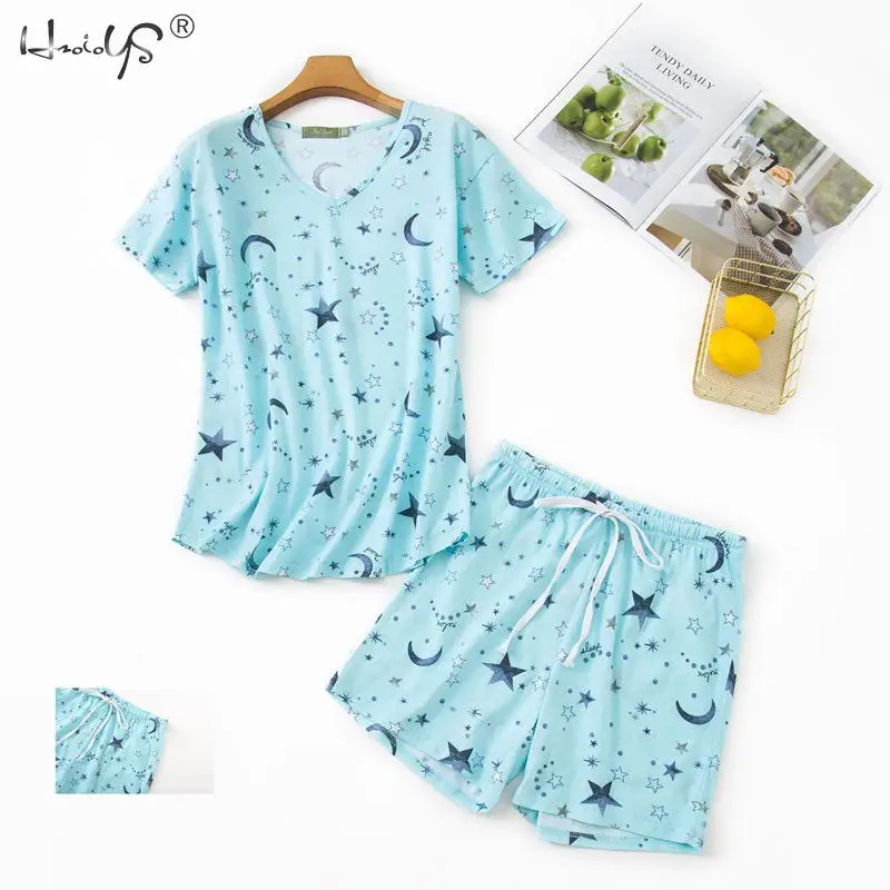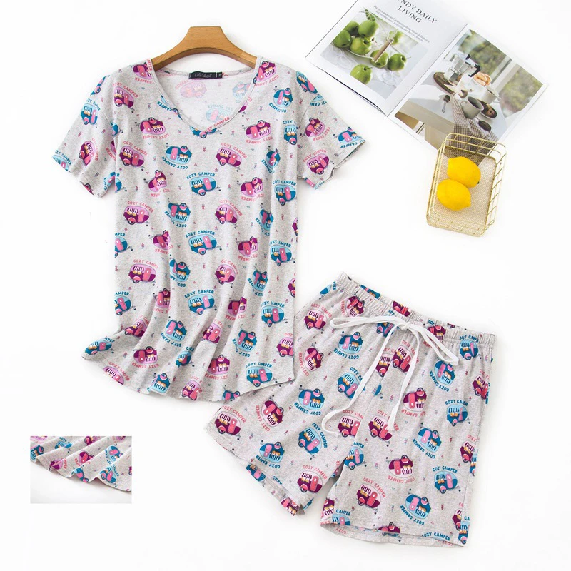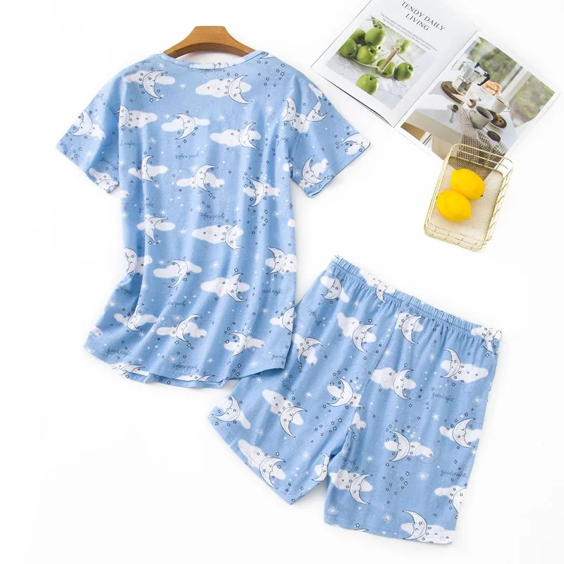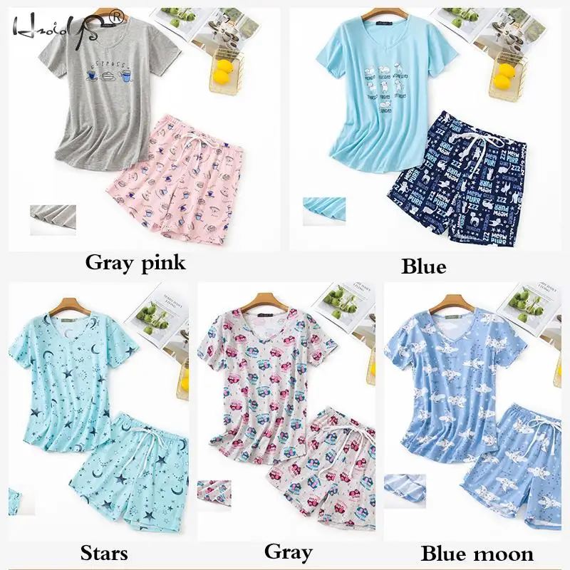 Новинка 2021, летний женский удобный милый пижамный комплект с принтом для девочек, пижамный комплект с коротким рукавом, костюм для сна, женские комплекты ночной рубашки