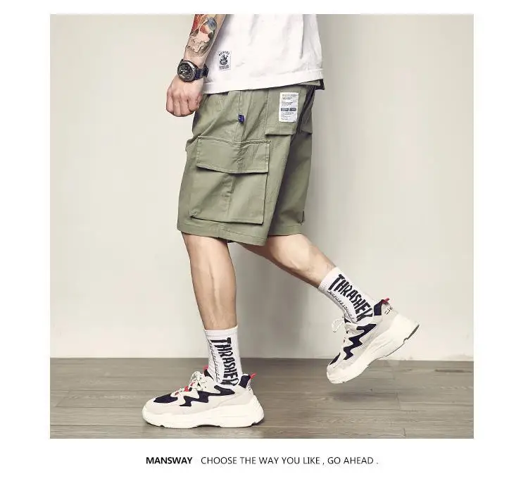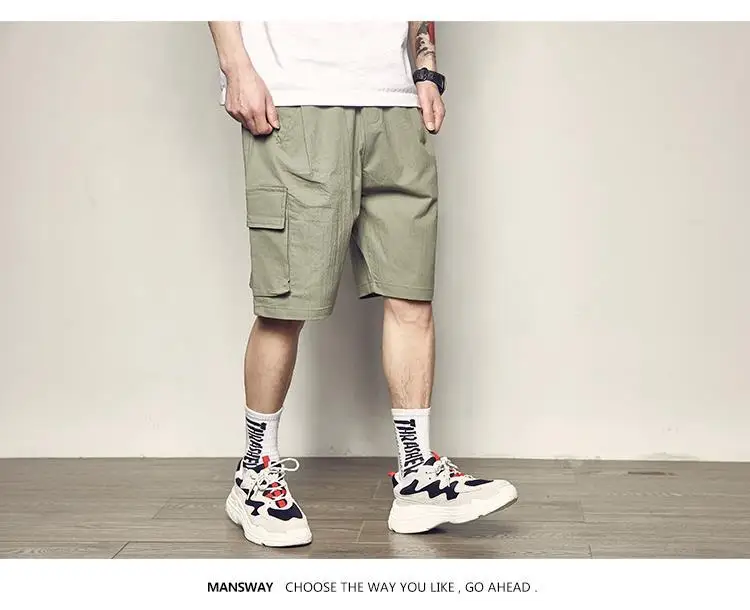 Мужские шорты Карго, летние повседневные шорты с карманами, мужские шорты для бега, Мужские дышащие шорты больших размеров шорты в уличном стиле MKX055