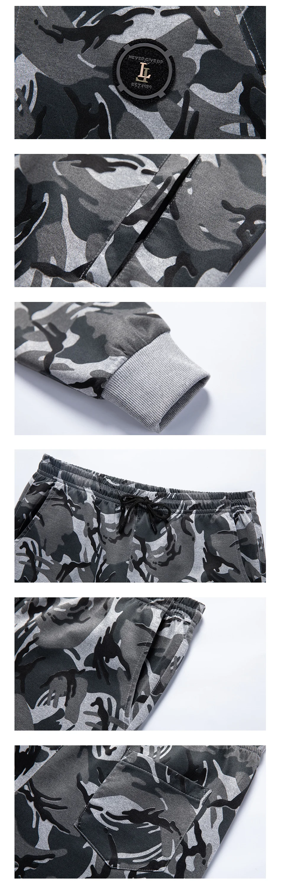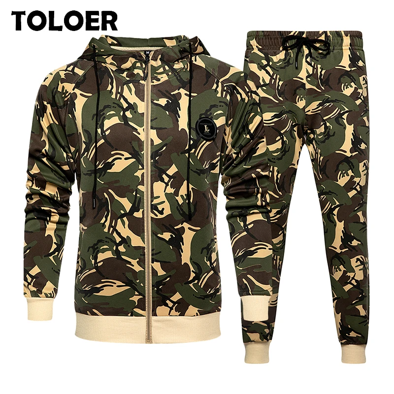 Мужской Камуфляжный спортивный костюм, повседневная камуфляжная куртка и брюки, свитшот с капюшоном, осень 2020