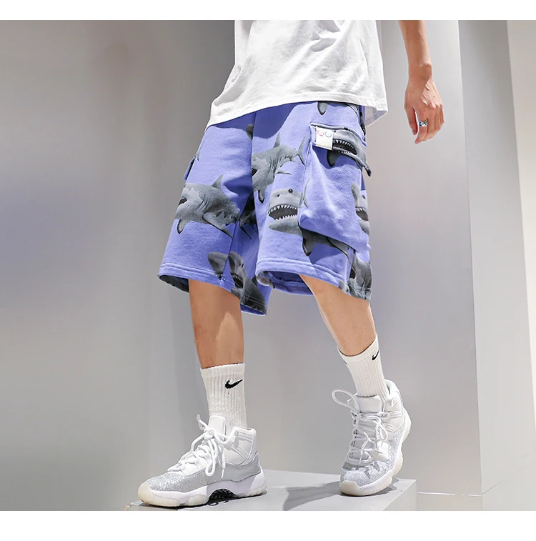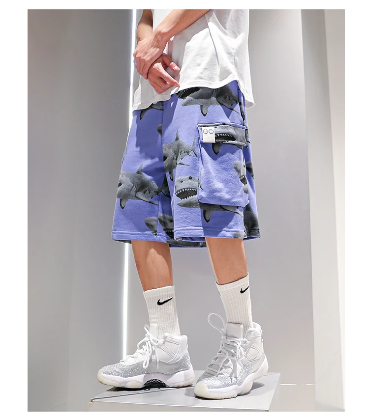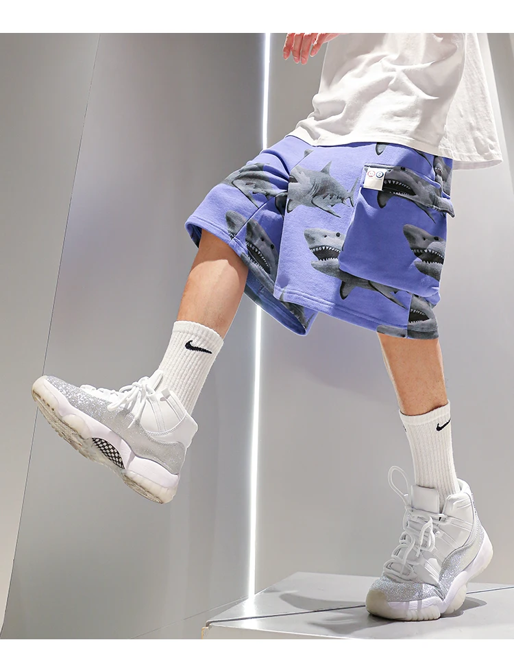 Шорты свободные спортивные с принтом акулы, Стильные Баскетбольные тренировочные брюки, уличная одежда, стиль хип-хоп, 2020
