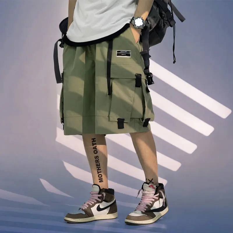 Черные мужские шорты с большими карманами товары харадзюку японские...