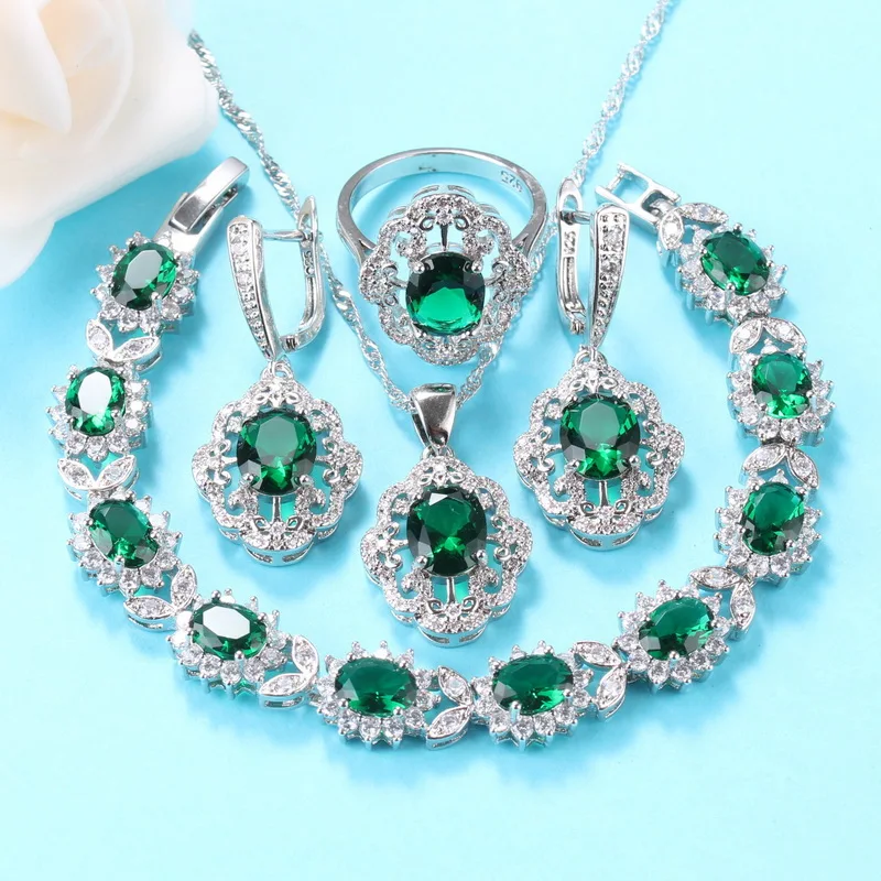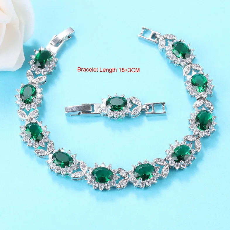Марокканские Caftan Свадебные Ювелирные наборы из стерлингового серебра 925 пробы, серьги из зеленого циркония, ожерелье, браслет и кольцо, женские подарочные наборы