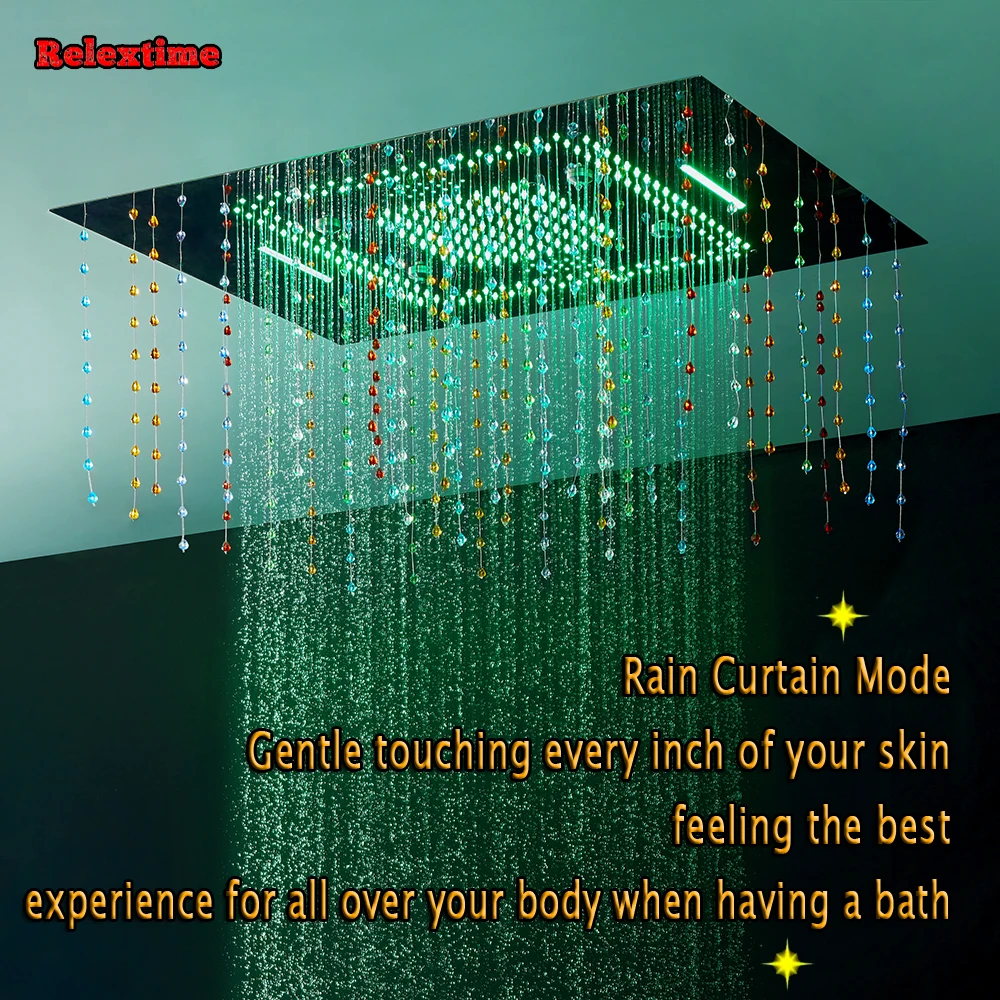 Новый стиль, большой поток, светодиодный набор для душа для ванной комнаты, 6 выходов, термостатический смеситель с насадкой, светильник светодиодный, встраиваемая потолочная душевая головка, дождь, водопад, занавеска и распылительный туман, сСоединение Bluetooth, С кристаллическим кварцемУкрашениеWJ8401