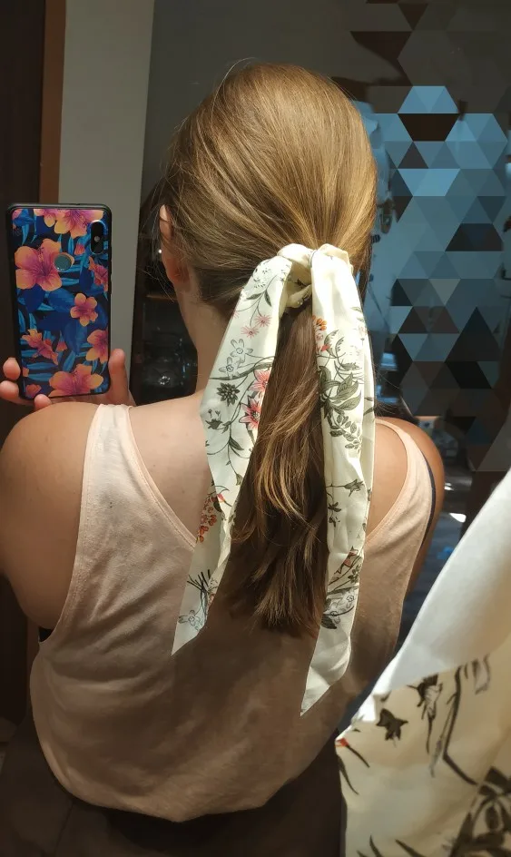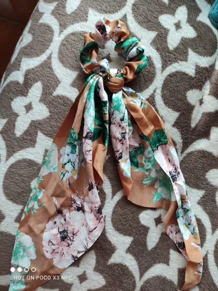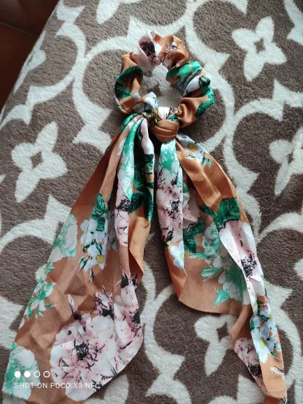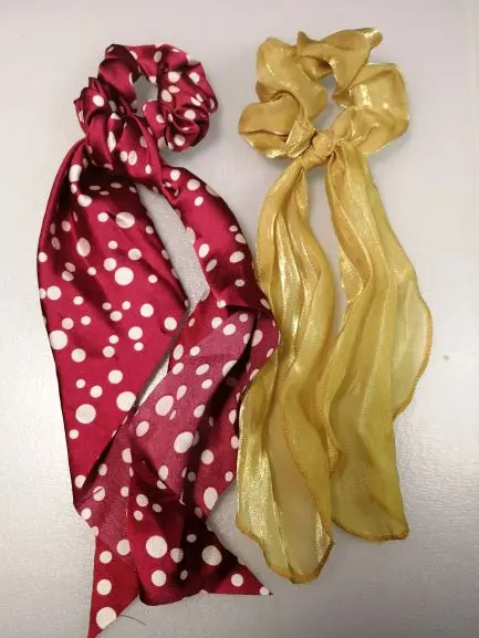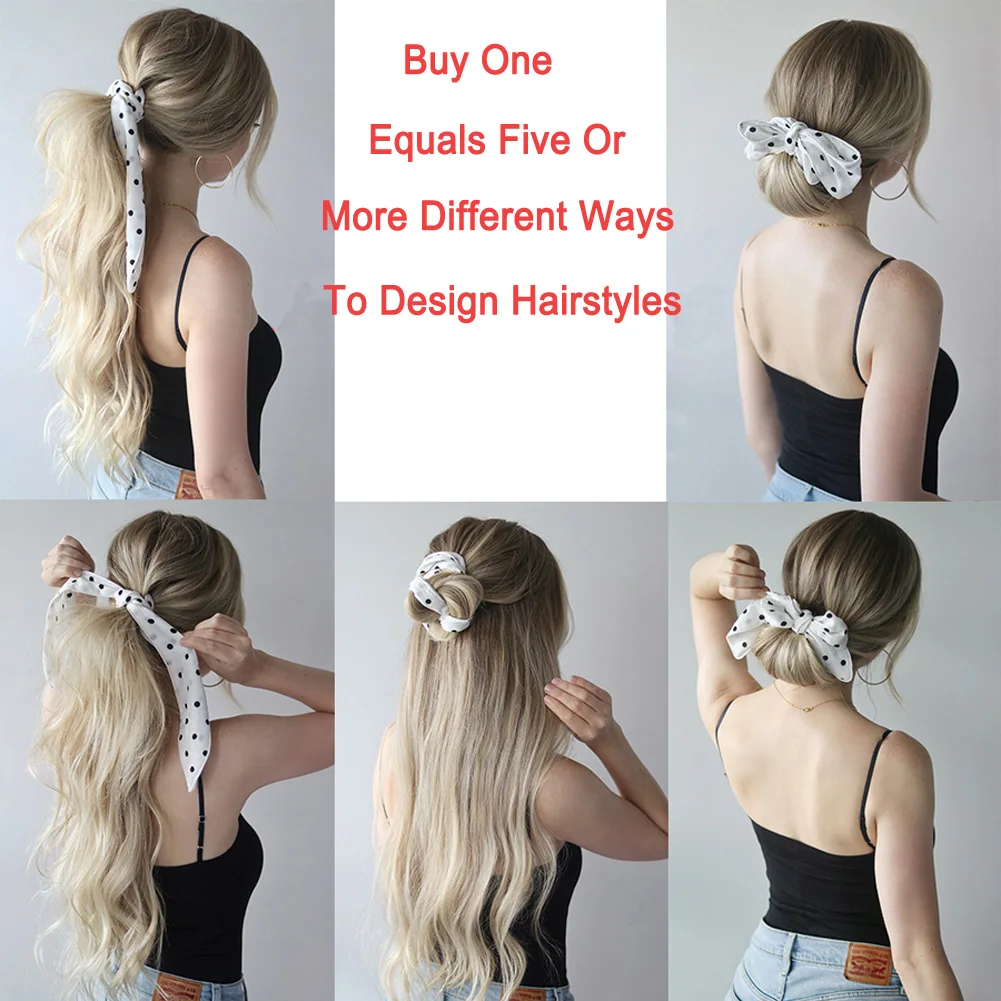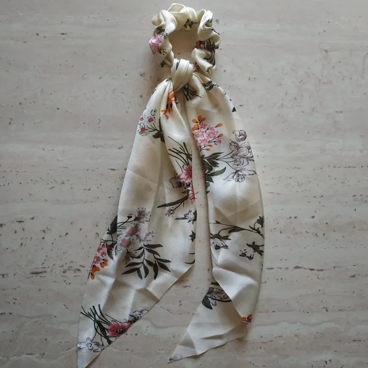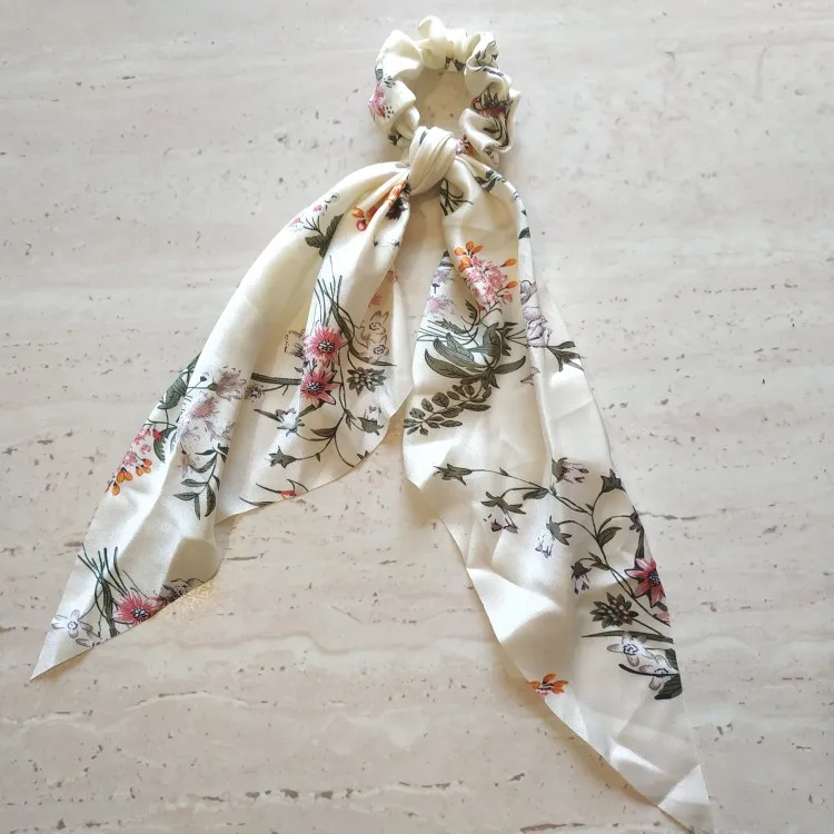 Резинки для волос, длинные, с цветочным принтом, в горошек, для шарфа, Женский хвостик