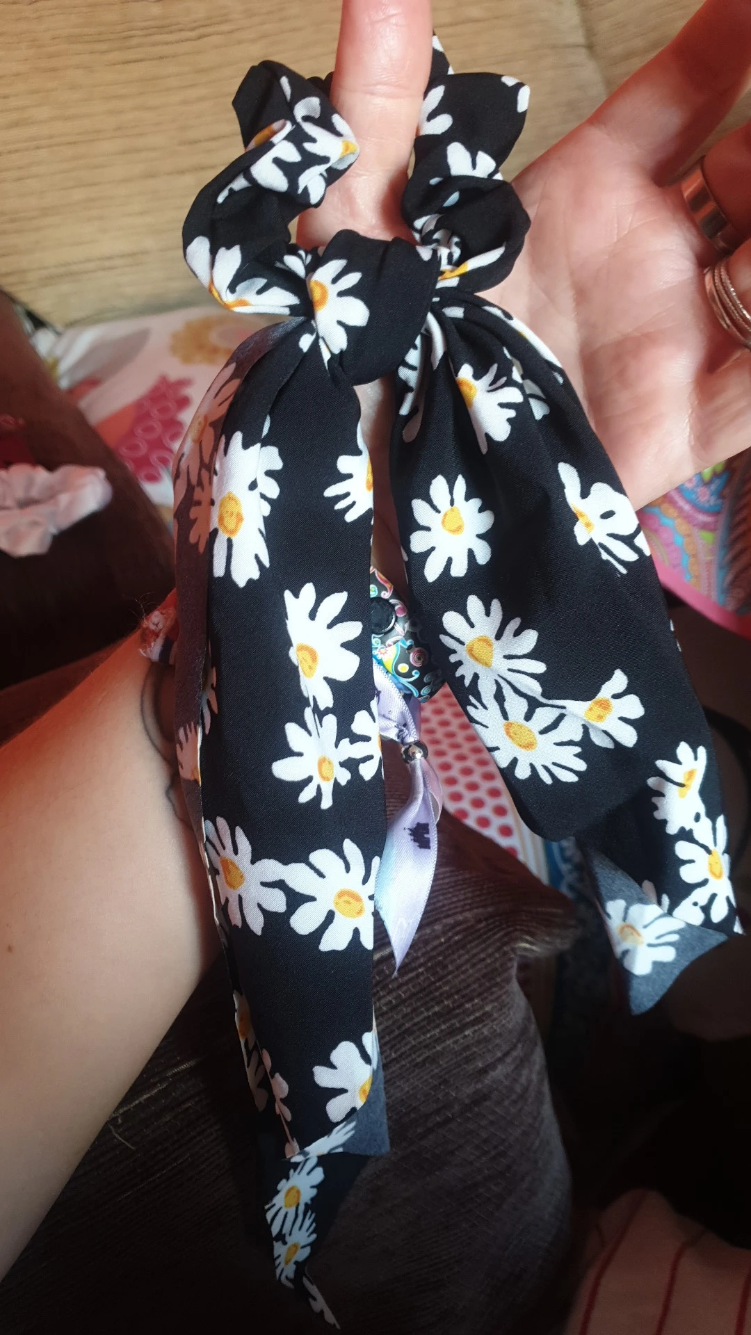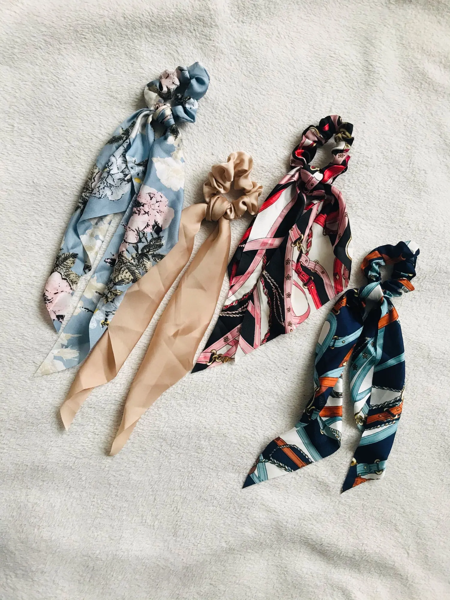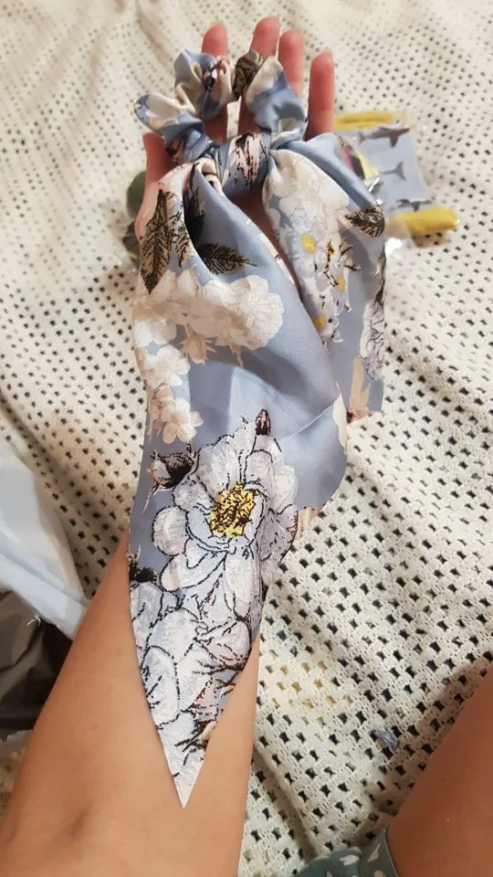 Резинки для волос, длинные, с цветочным принтом, в горошек, для шарфа, Женский хвостик