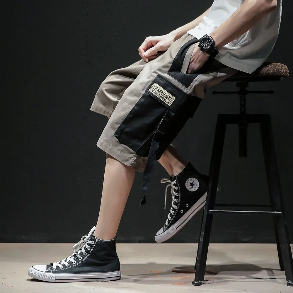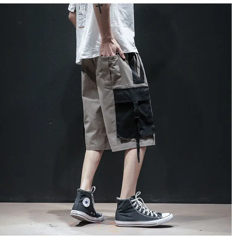 Черные мужские шорты с большими карманами товары харадзюку японские...