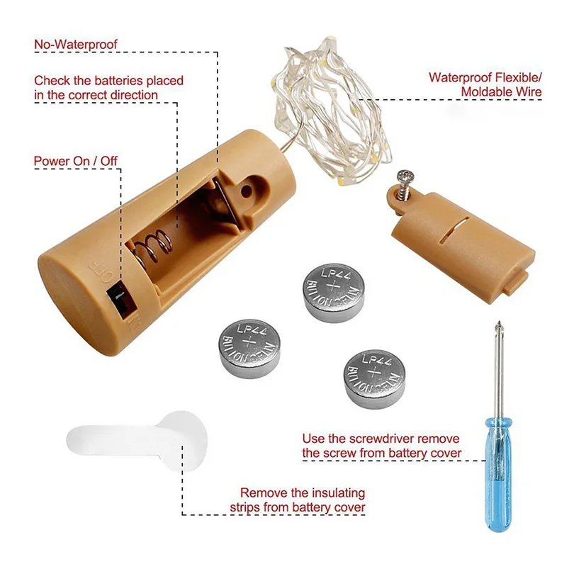 10 шт. в комплекте с батареей, пробка для бутылки вина, сказосветильник, Рождественское украшение, светодиодная гирлянда для комнаты, дома, вечерние НКИ, праздничный Декор