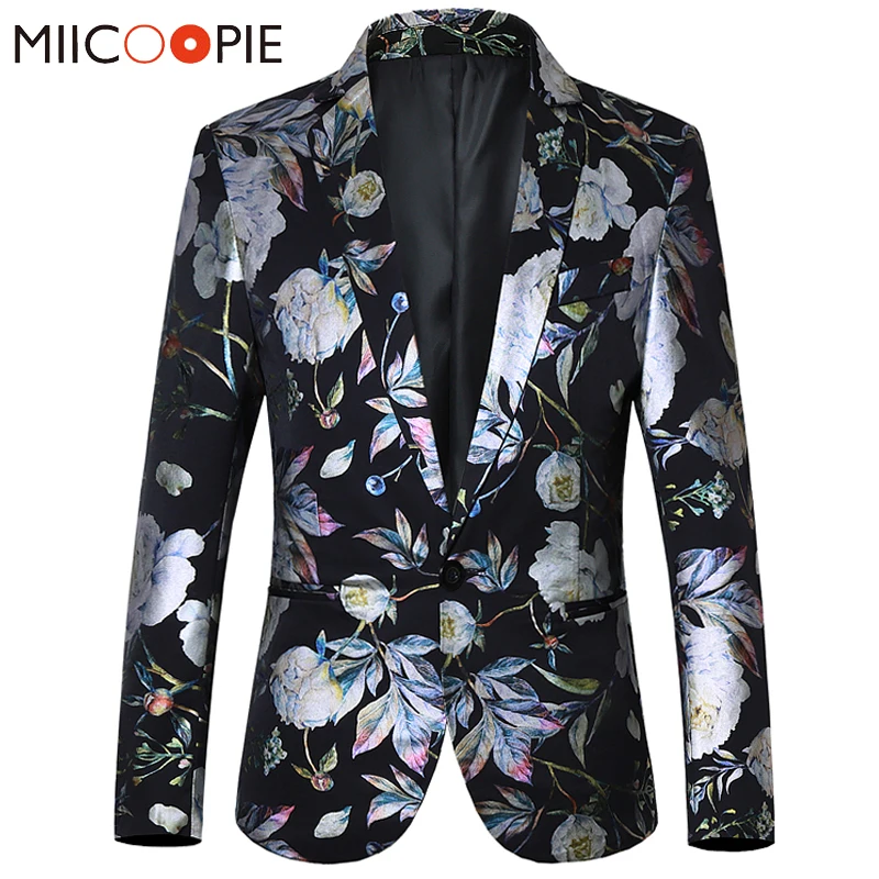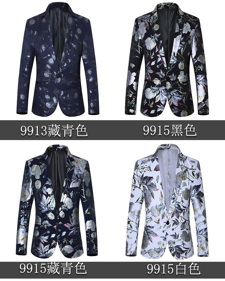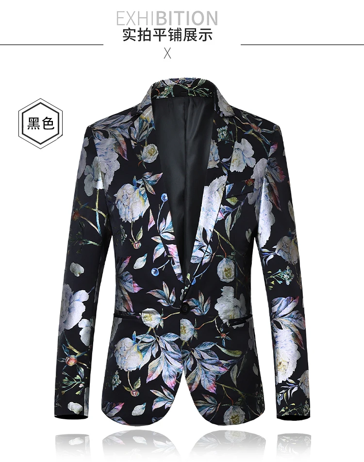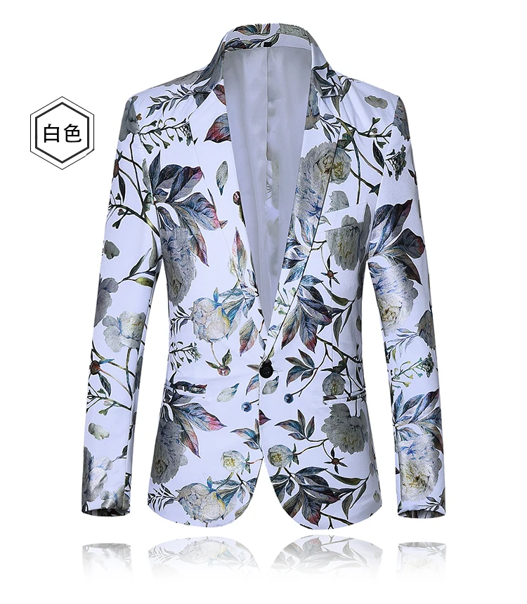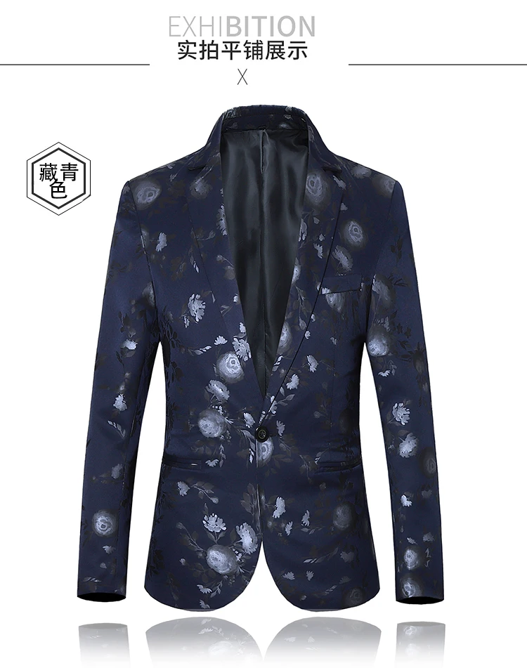 Мужской свадебный приталенный Блейзер, темно-синий, черный, белый пиджак с цветочным принтом, одежда для выпускного вечера, 2020, 5XL, 6XL
