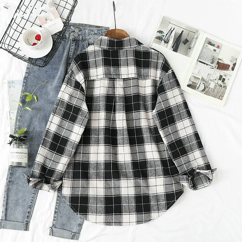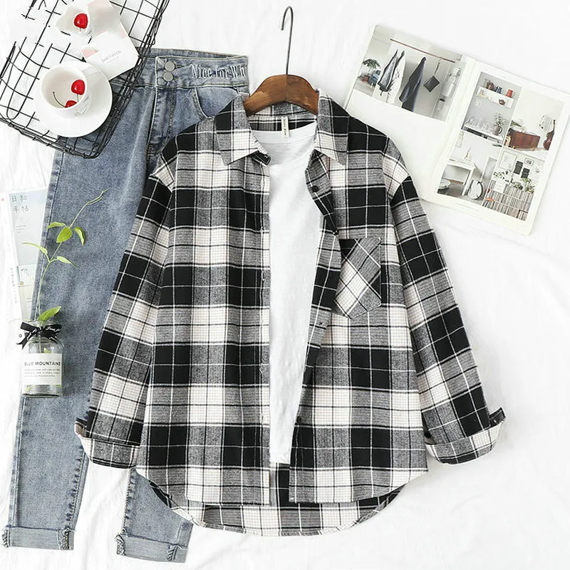 Корейский стиль модная женская шикарная оверсайз плед рубашки блузки с длинным рукавом Женская Повседневная рубашка с принтом стильные хлопковые топы Блузы