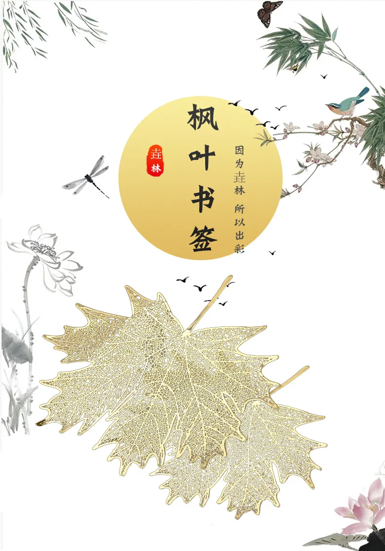 1 шт. полые металлические закладки в китайском стиле, золотые кленовые листья, маркеры на странице, студенческие канцелярские принадлежности, подарок учителю