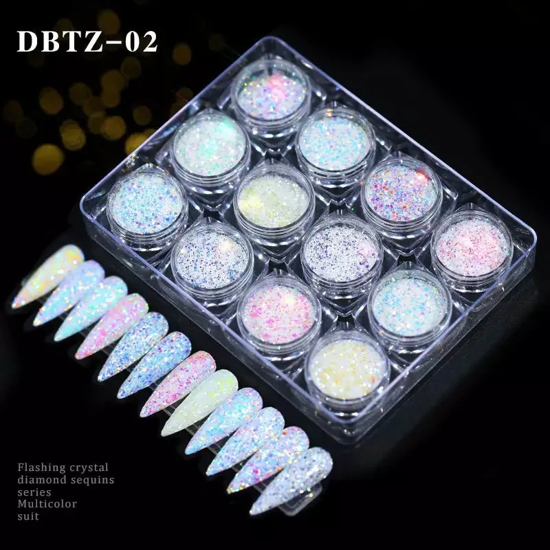 12 x Блестящий цветной блеск для ногтей (без клея для ногтей)
