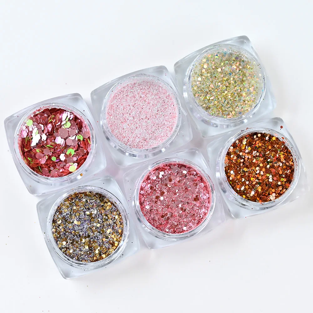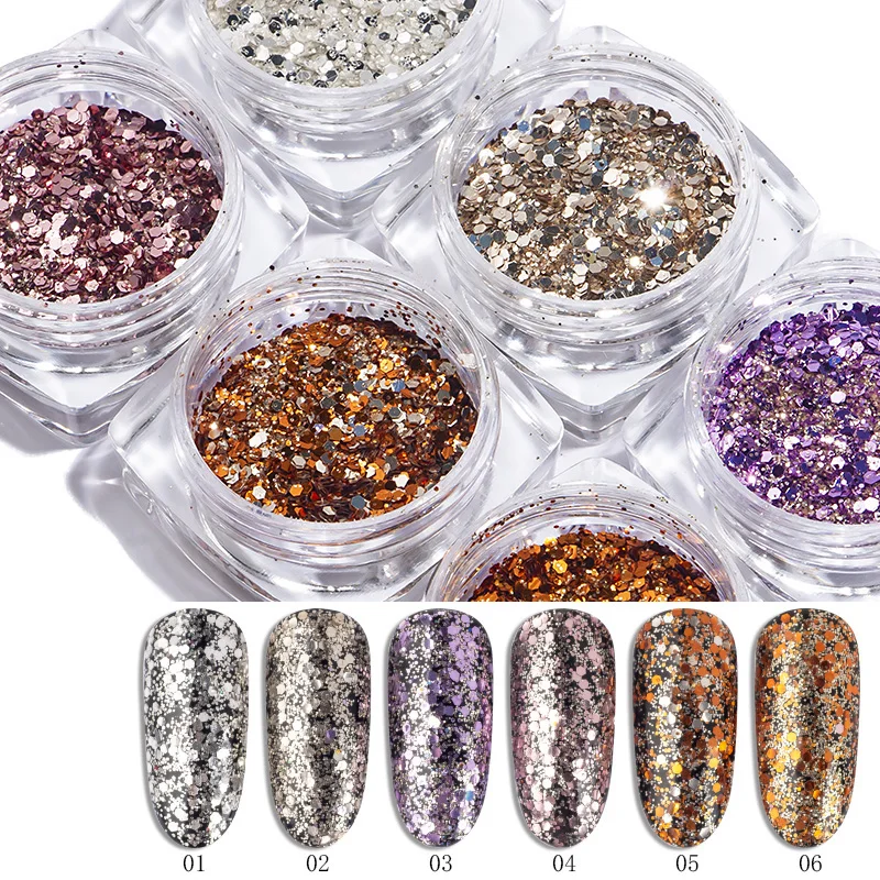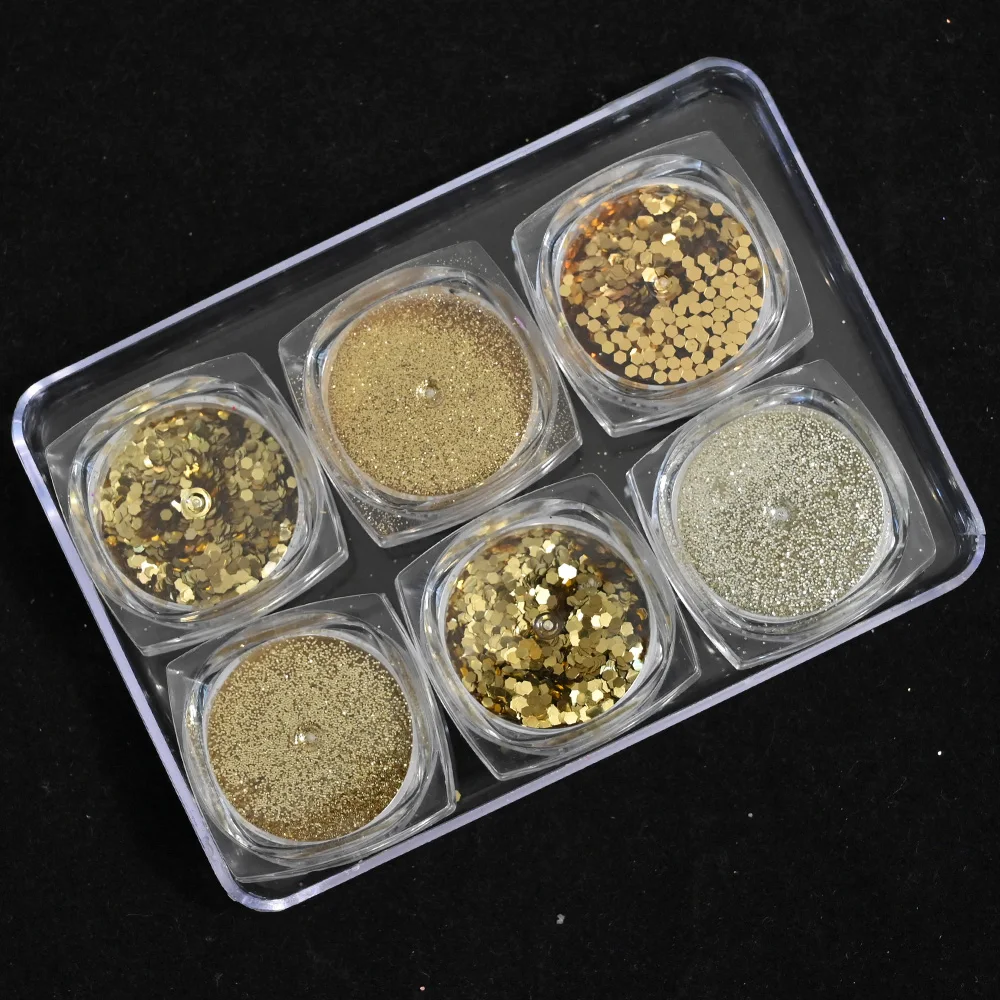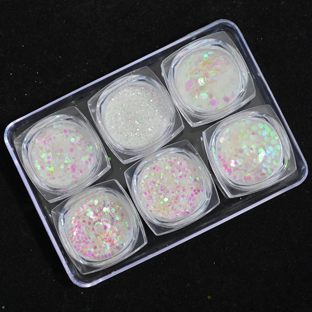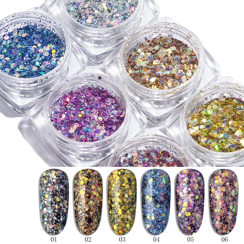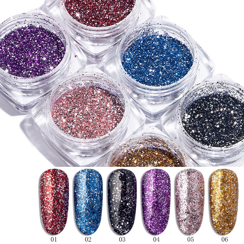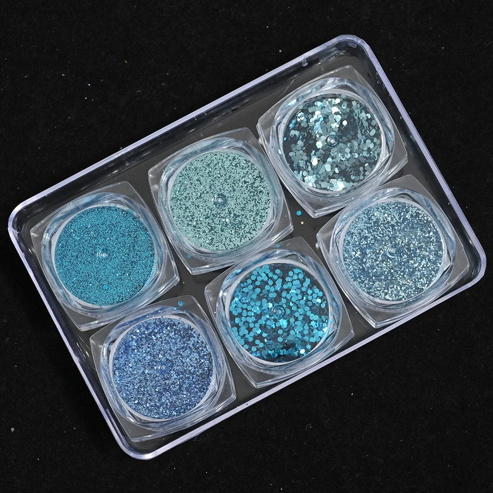 6 шт1 Набор переливающиеся массивные блестки Utra-Fine 0,2 мм блестки хлопья порошок пигмент для 6 цветов голокрапический блеск