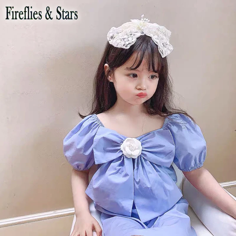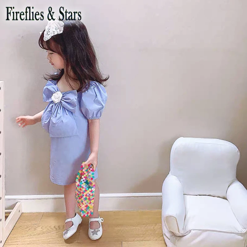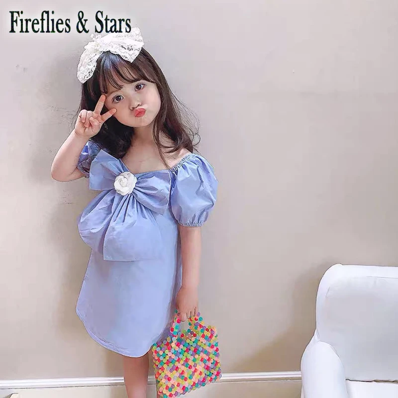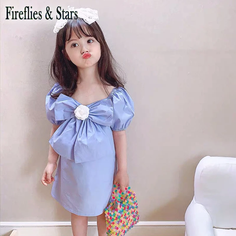 Название:Летнее платье для девочек; Платье для малышей; Детская модная одежда; vestidos; Синее платье принцессы с большим бантом; Платье с пышными рукавами и цветочным рисунком для детей от 3 до 8 лет