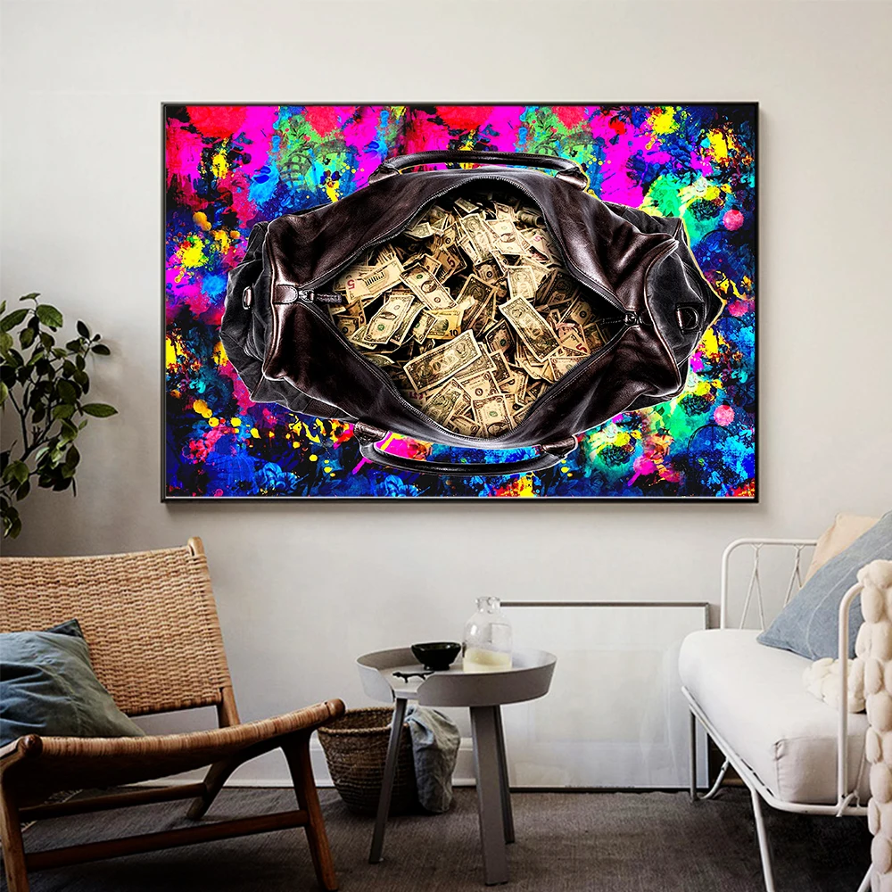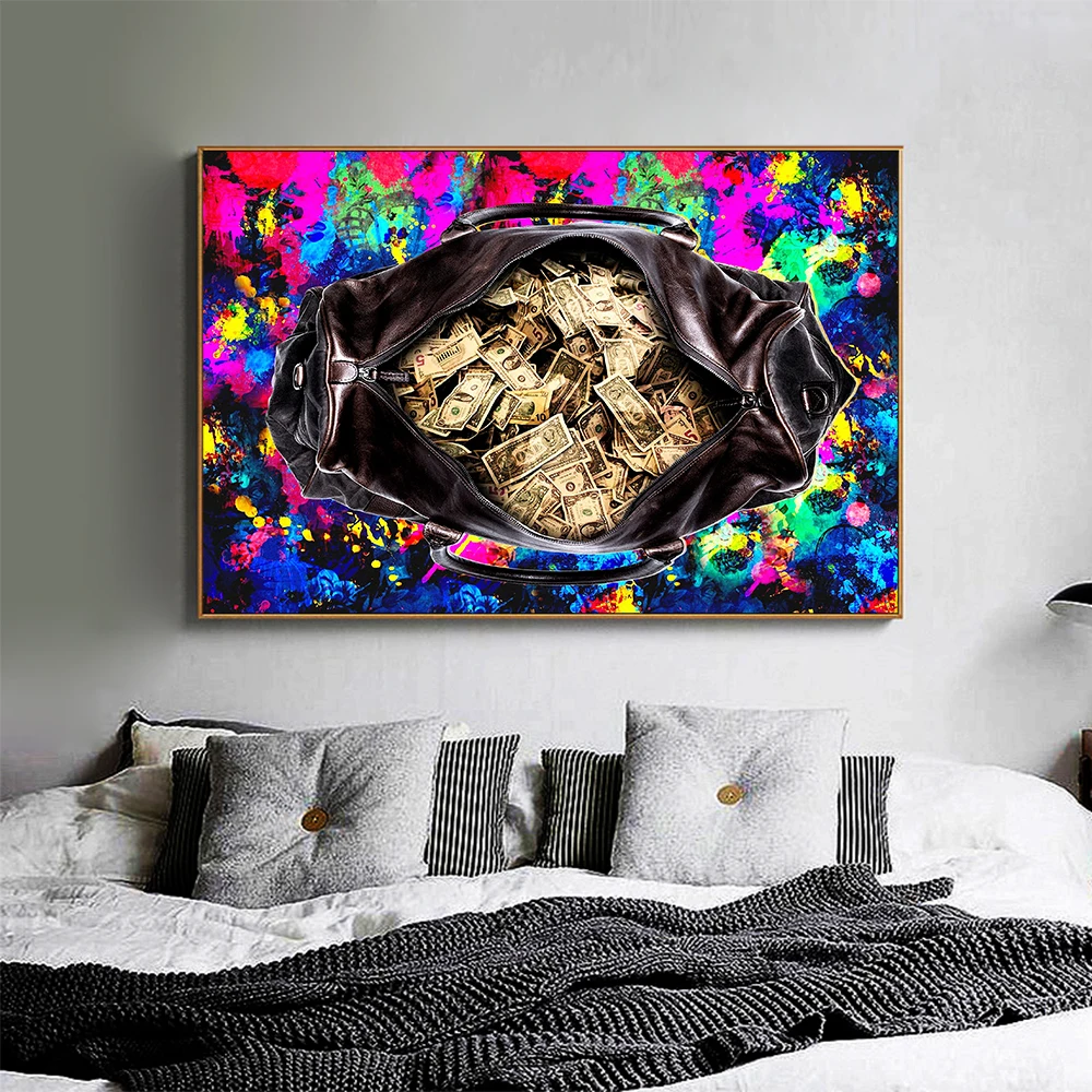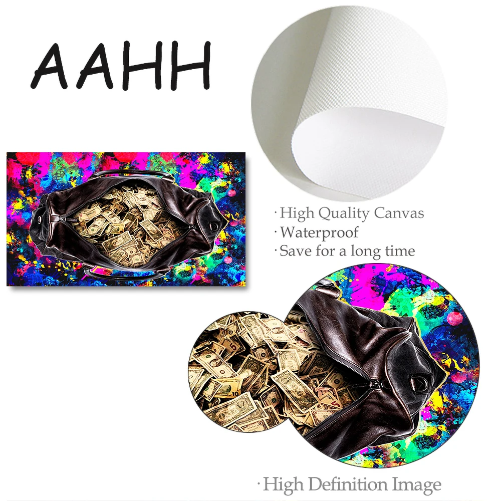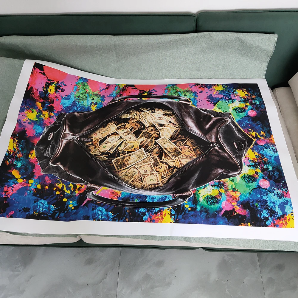 Цветной HD холст, настенный художественный постер, Современная культура, стиль денег, Красный Фиолетовый, сто денег, сумка, печать на холсте для украшения дома