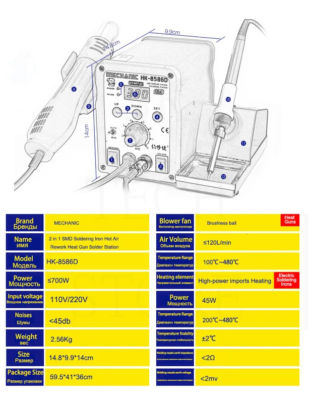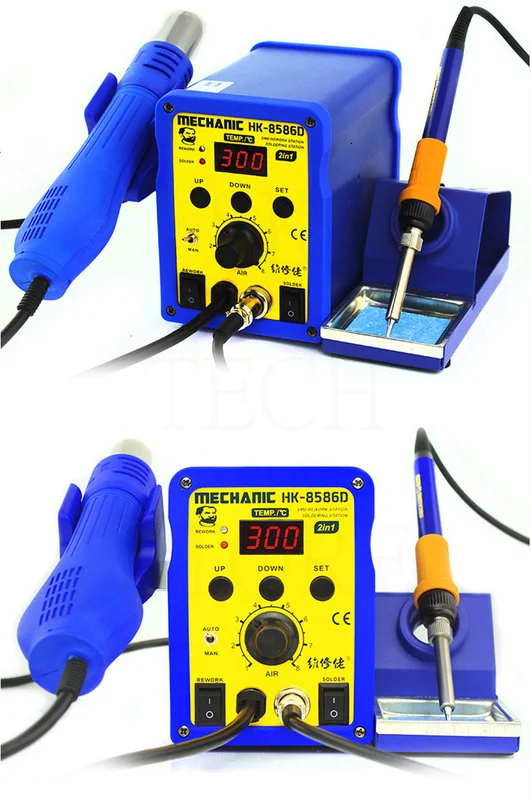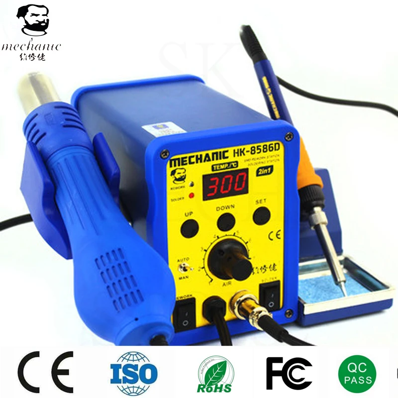 Механик HK-8586D 220V 700W HK-8586D 2 в 1 SMD паяльник для подключения к Термовоздушная паяльная Тепловая пушка паяльной станции