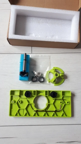 Полный комплект джиг-все, что нужно в наборе-сверла, направляющие, регулировки для смещения кромки петли. Подходит для хобби/домашнего использования. Рекомендовано.