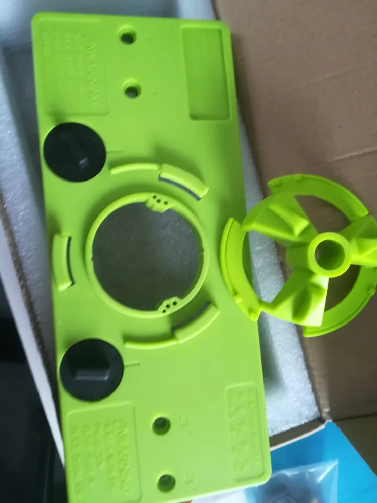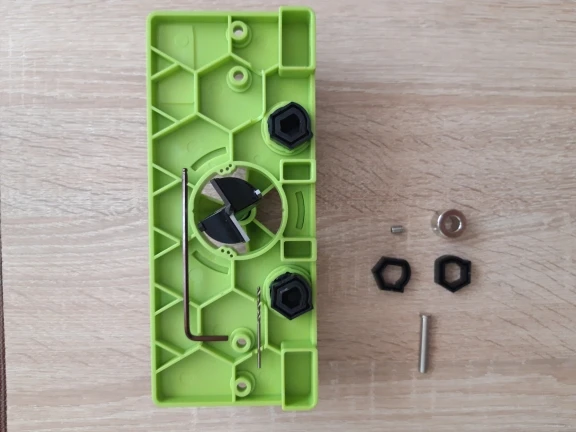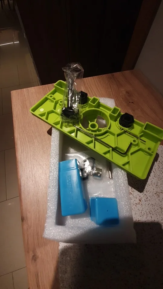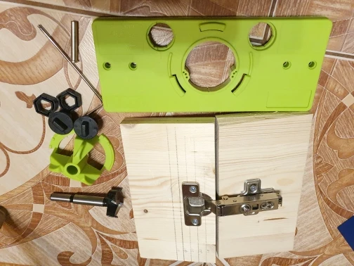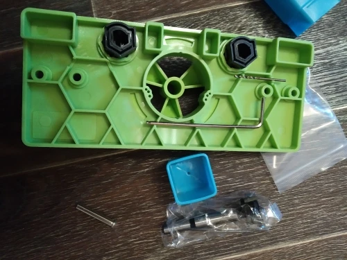 Довольно неспешная доставка (53 дня в Воронеж), но приспособа того стоила! Делаю себе мебель на кухню. Не представляю, как я бы без этого шаблона фрезеровал слепые 35 мм отверстия под чаши мебельных петель. С приспособлением всегда выдерживаются необходимые расстояния от краев фасада, обеспечивается перпендикулярность оси фрезы, ограничивается глубина фрезеровки. Профессионалам в мебельный цех он не нужен - там используются стационарные станки. Любителям для нечастого использования самое то! Нюанс - долго не мог разобраться, как выставить расстояние от края, пока не понял, что надо СНЯТЬ черные многоугольные кольца, тогда получится нужное расстояние в миллиметрах. С надетыми кольцами фрезеруется с заходом за край фасада (для некоторых экзотических петель). Из минусов - все три варианта сверления под шурупы для моих вполне стандартных мебельных петель Blum 110° не подошли. Несложно разметить с петлей и насверлить без шаблона, но неприятно. Может быть к другим брендам фурнитуры подойдет