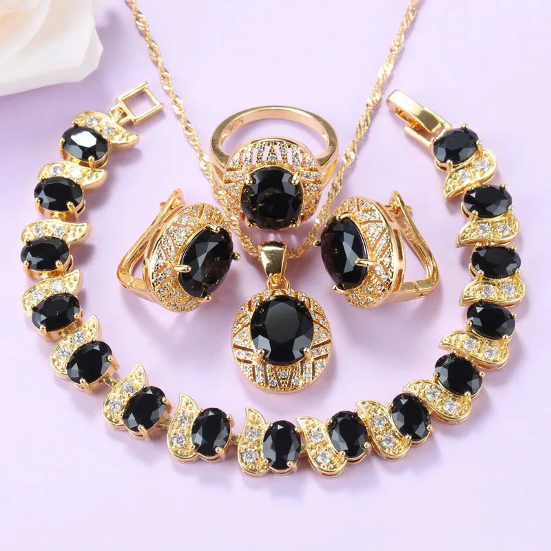 AAA + качественные наборы ювелирных изделий золотого цвета для женщ...