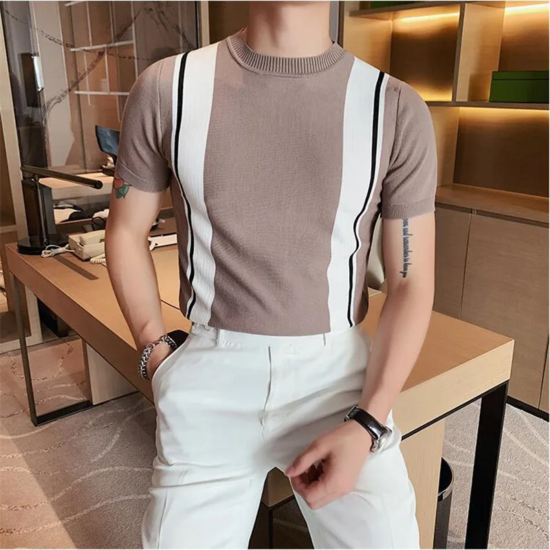 Футболка мужская Трикотажная облегающая с круглым вырезом и коротким рукавом