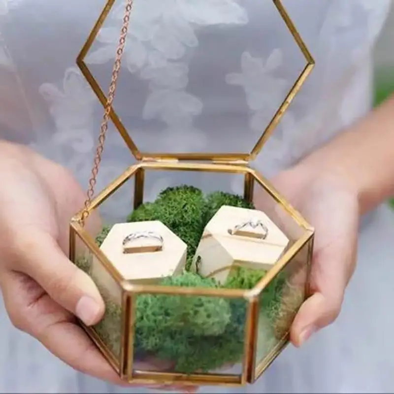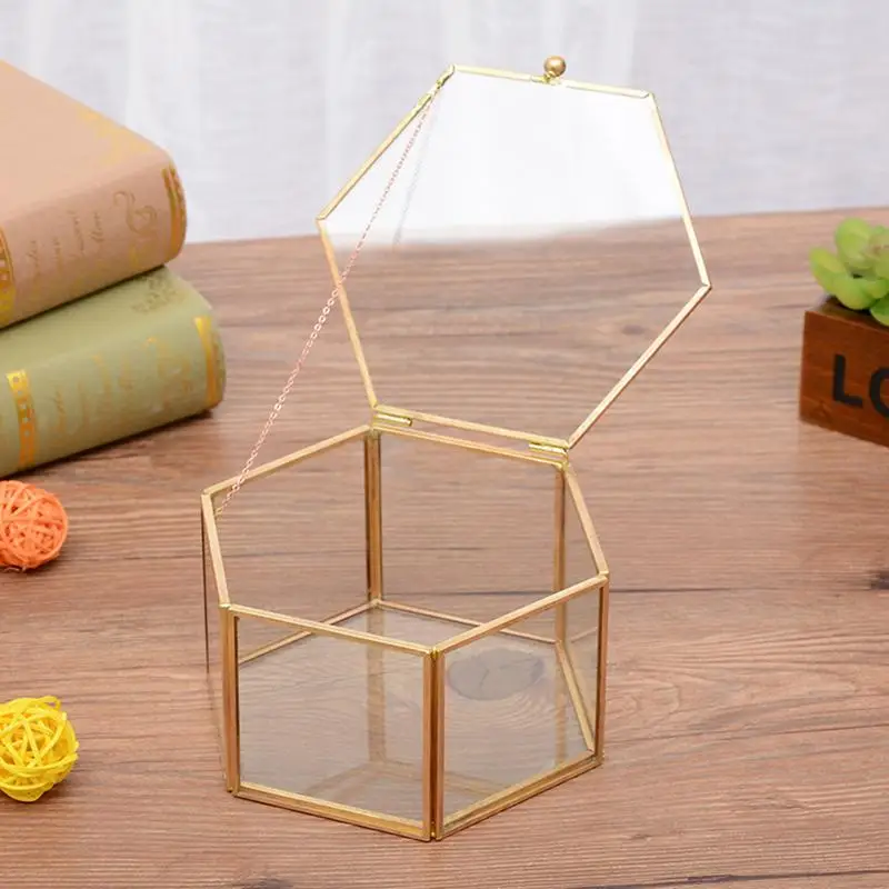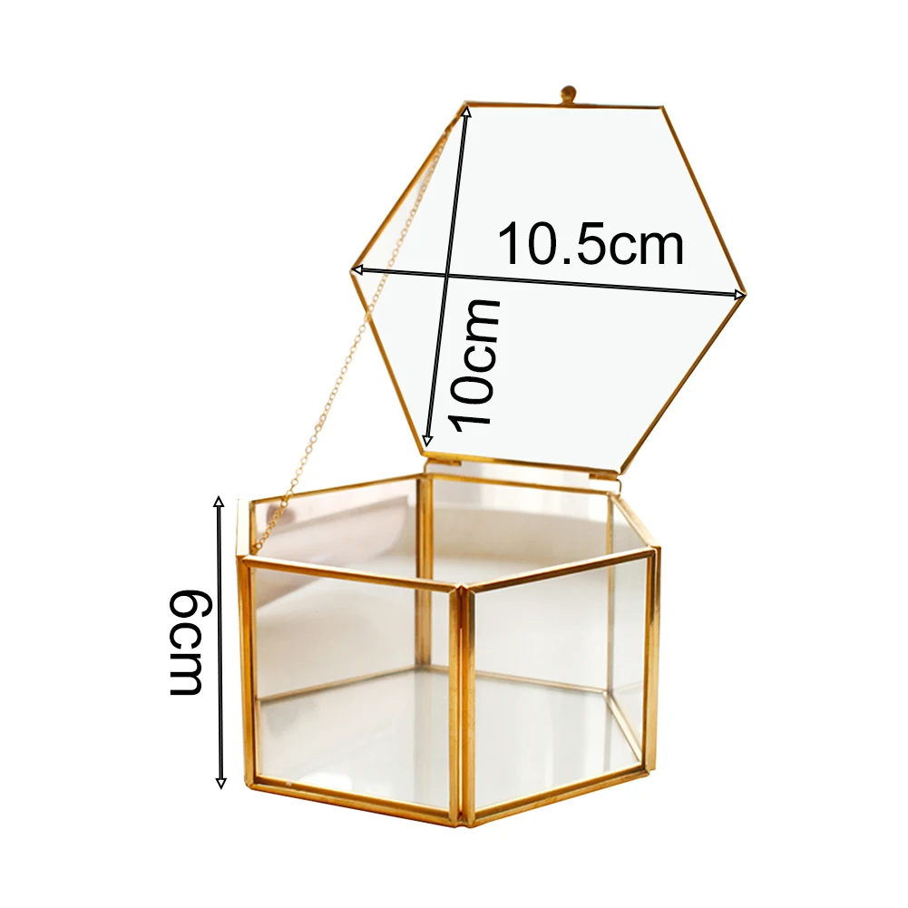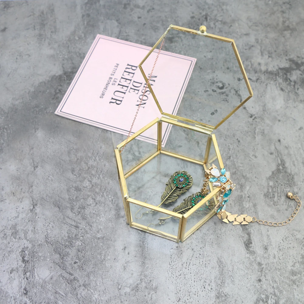Шкатулка для безделушек, шестиугольная, прозрачная, стеклянная, чехол для макияжа, обручальное кольцо, вечный цветок, стеклянная крышка, инновационное украшение для дома