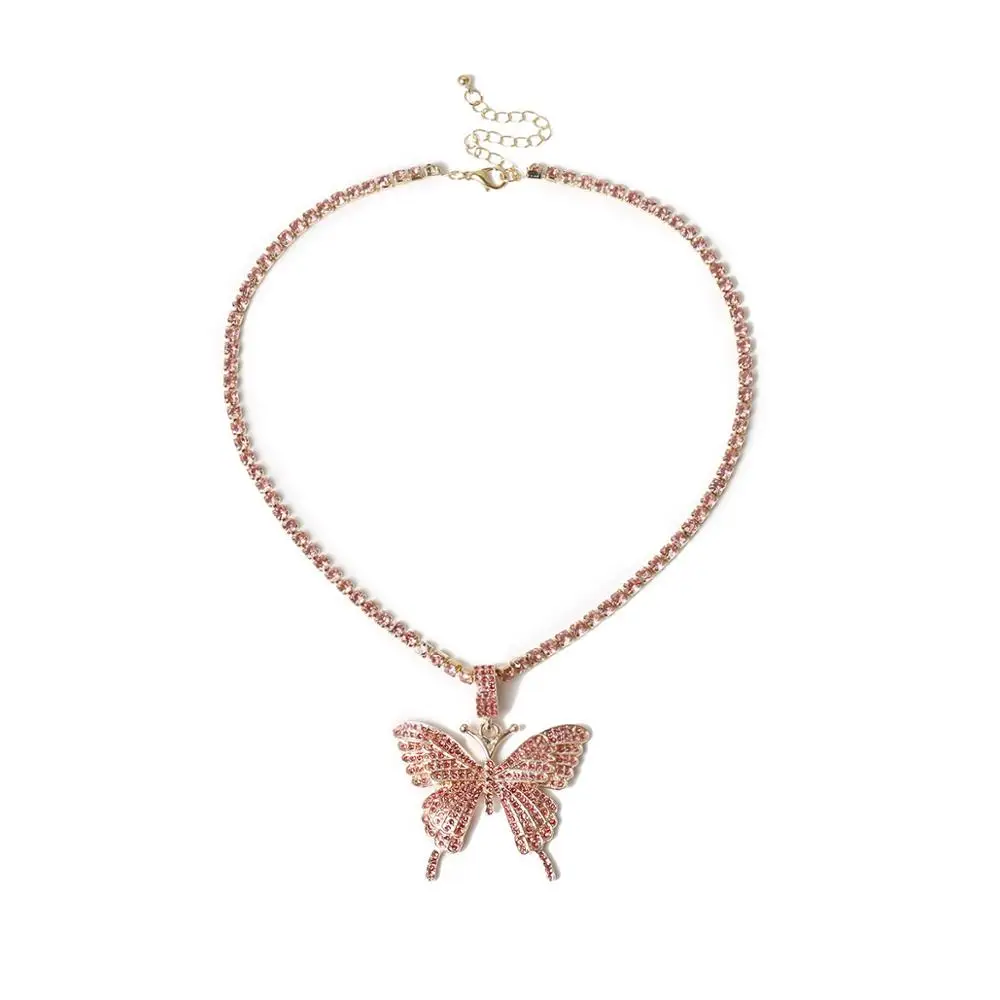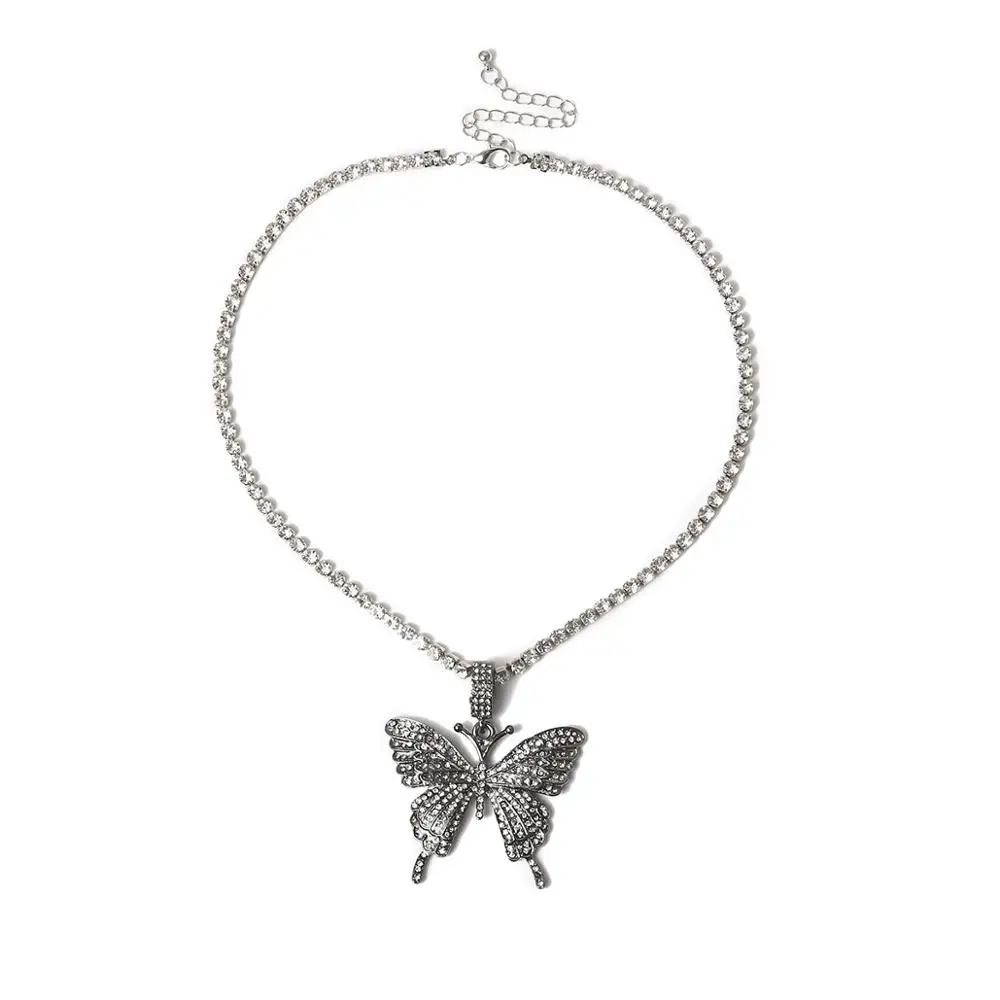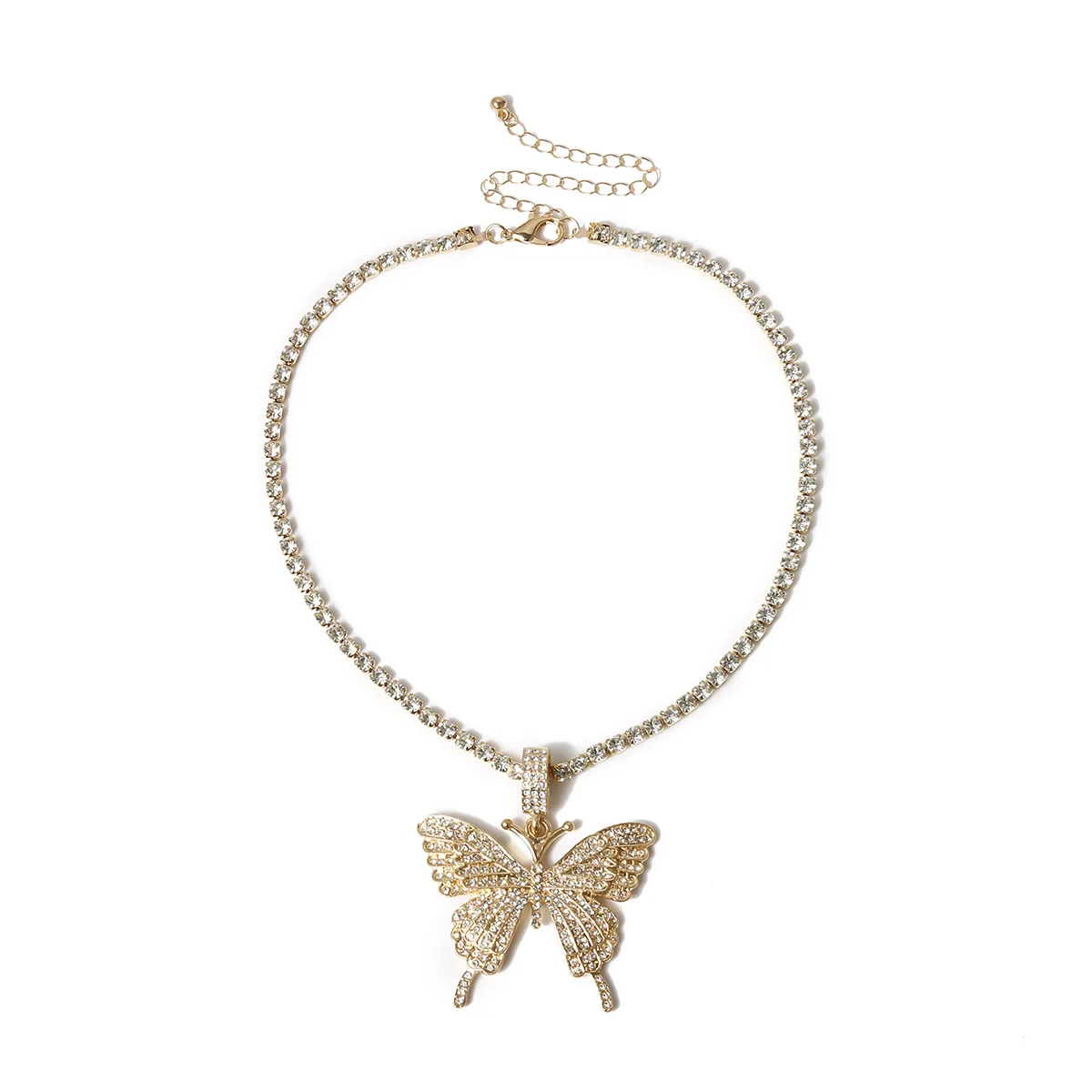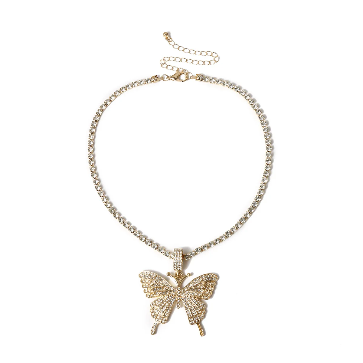 Панк Стразы цепь для тенниса ожерелье с бабочкой для женщин ожерель...