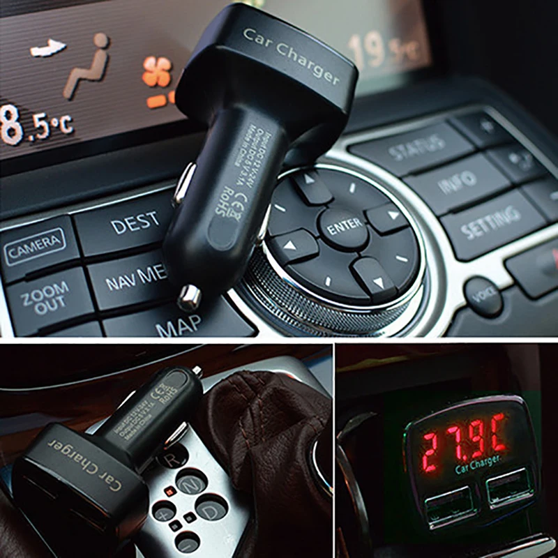 Автомобильное зарядное устройство 4 в 1 с двумя USB-портами и цифро...