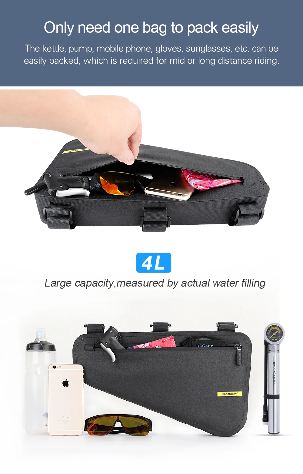 Сумка на седло Rhinowalk, водонепроницаемая треугольная, 13 л + рама 4 л