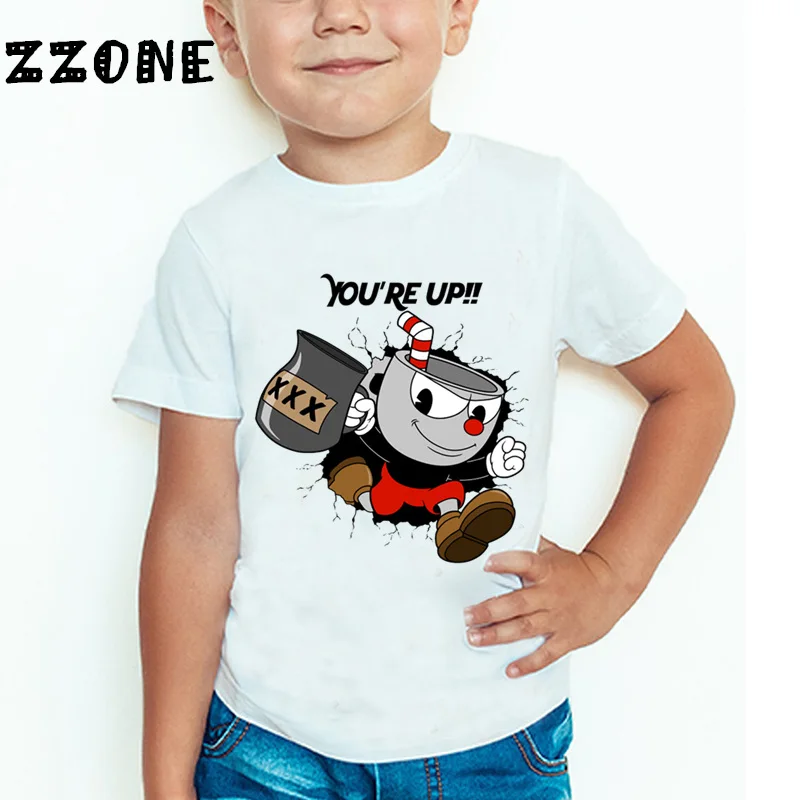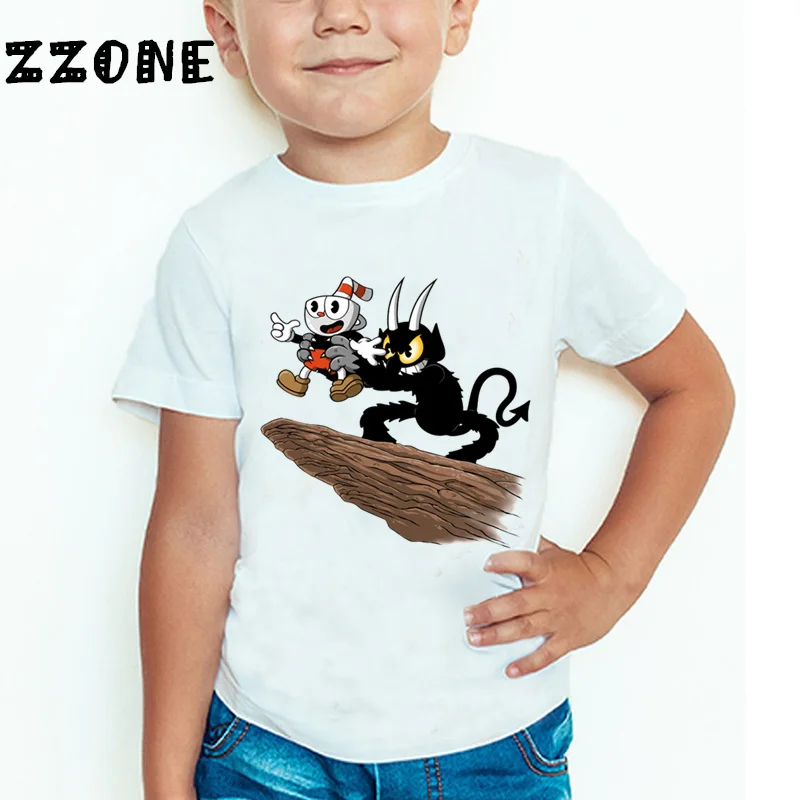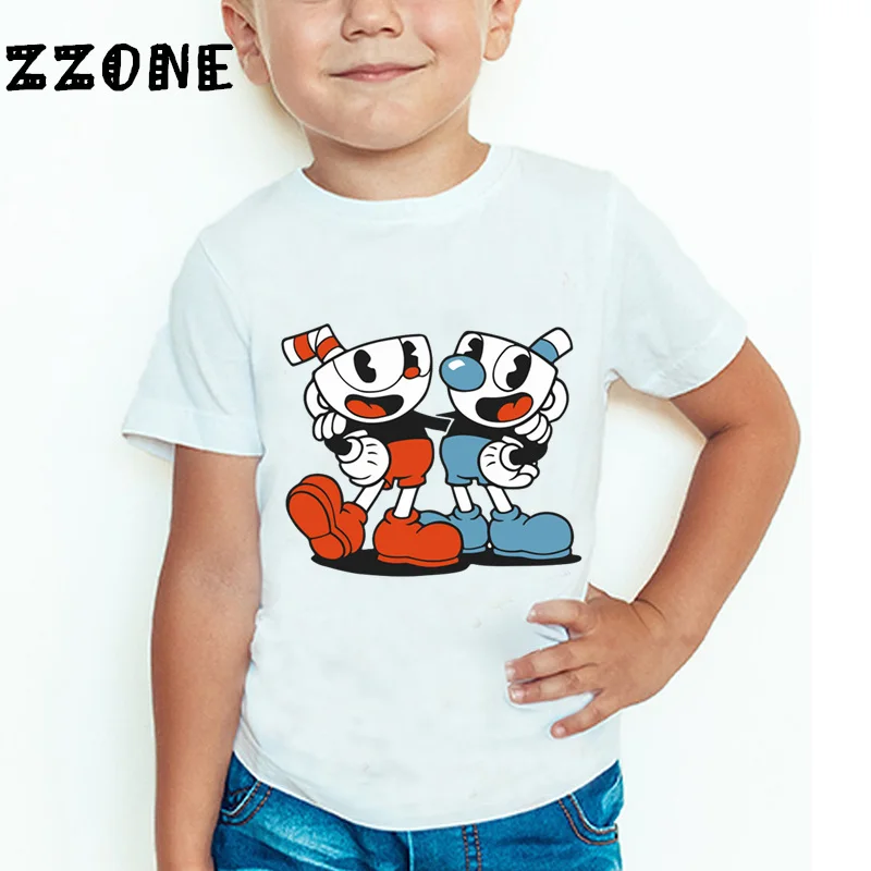 Детская забавная футболка с мультяшным принтом Cuphead, удобные топы с коротким рукавом для мальчиков и девочек, детская повседневная одежда