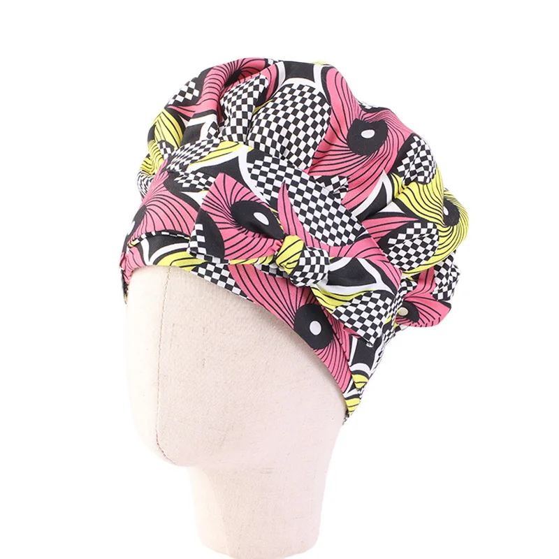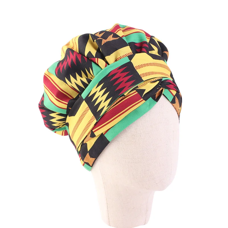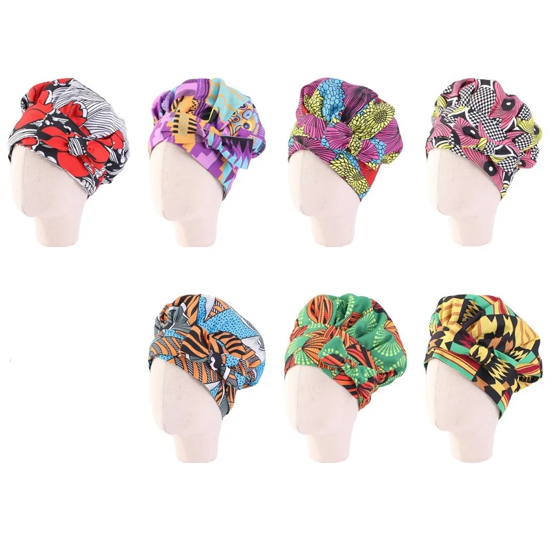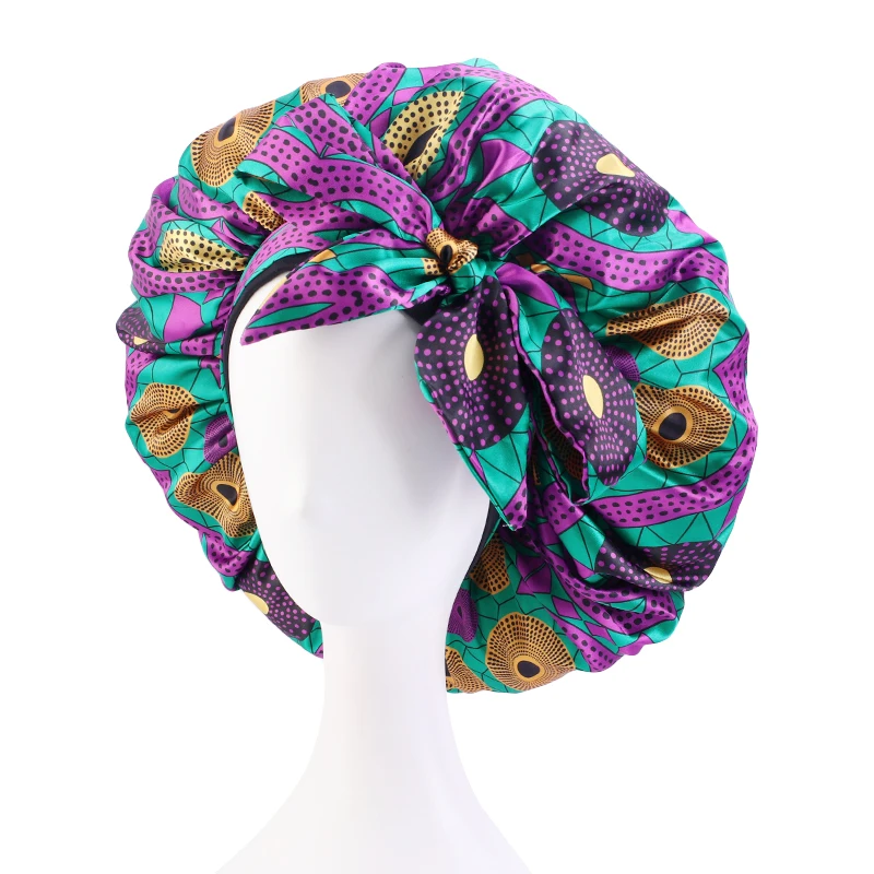 Женская атласная шапочка для волос с Африканским принтом, двусторонняя шапочка для волос с длинной лентой, с принтом Анкара, большой размер