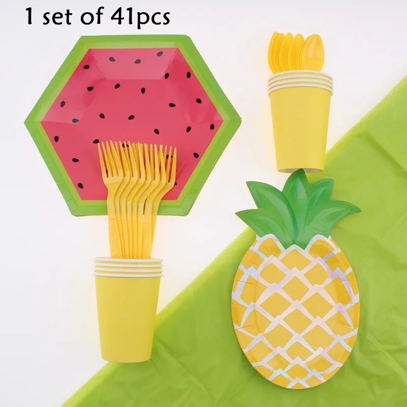 Одноразовая посуда, украшение для дня рождения, арбуз, ананас, одноразовые бумажные блюда, сервилletas, детский душ