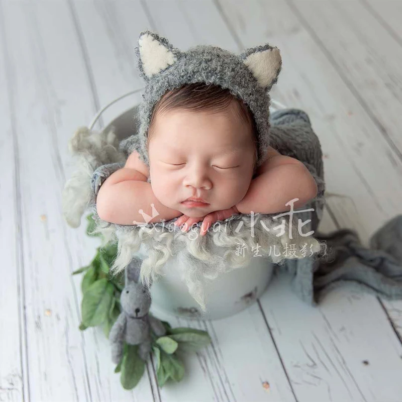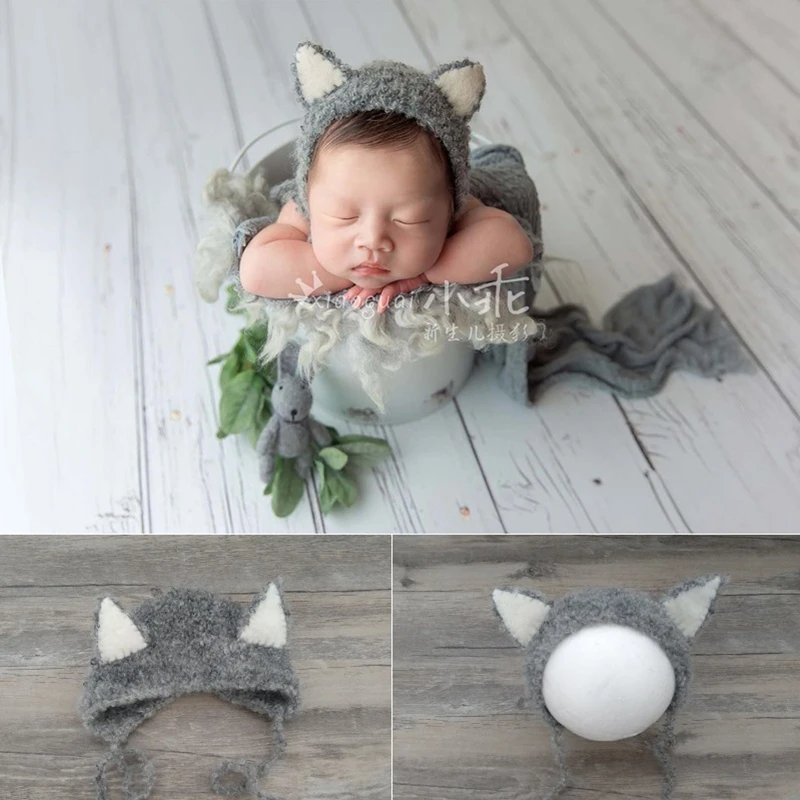 Реквизит для фотосъемки новорожденных, Пушистая Шапка ручной работы с лисой для реквизит для детской фотосъемки