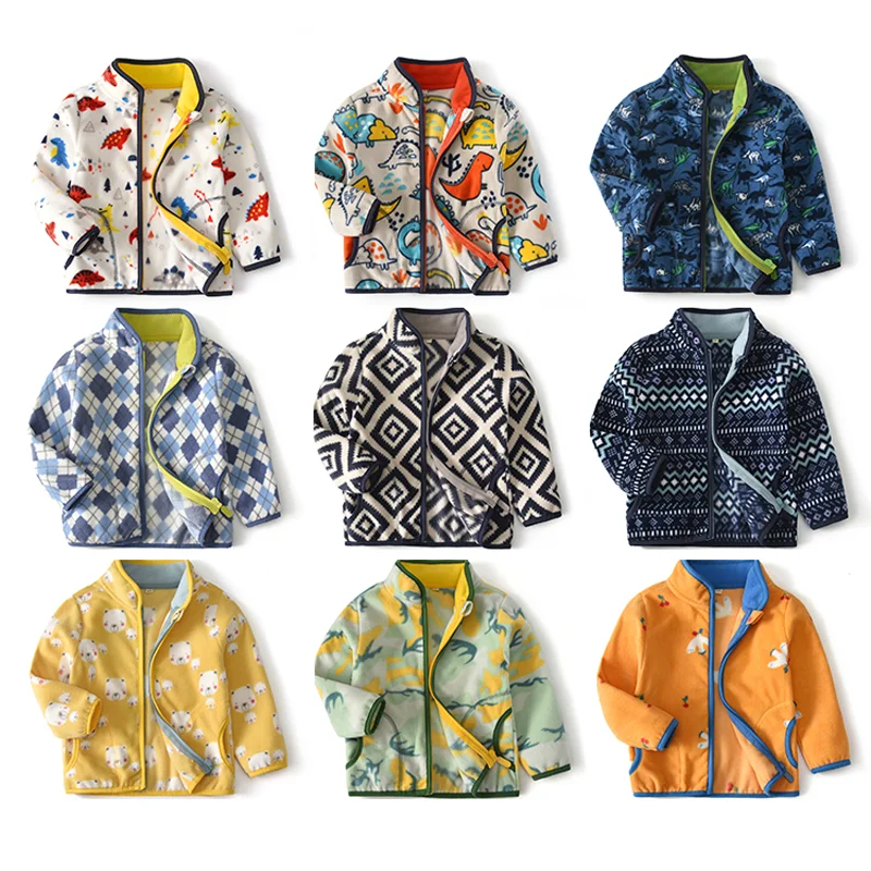 Куртка флисовая осенне-зимняя, с принтом, для мальчиков 2-14 лет