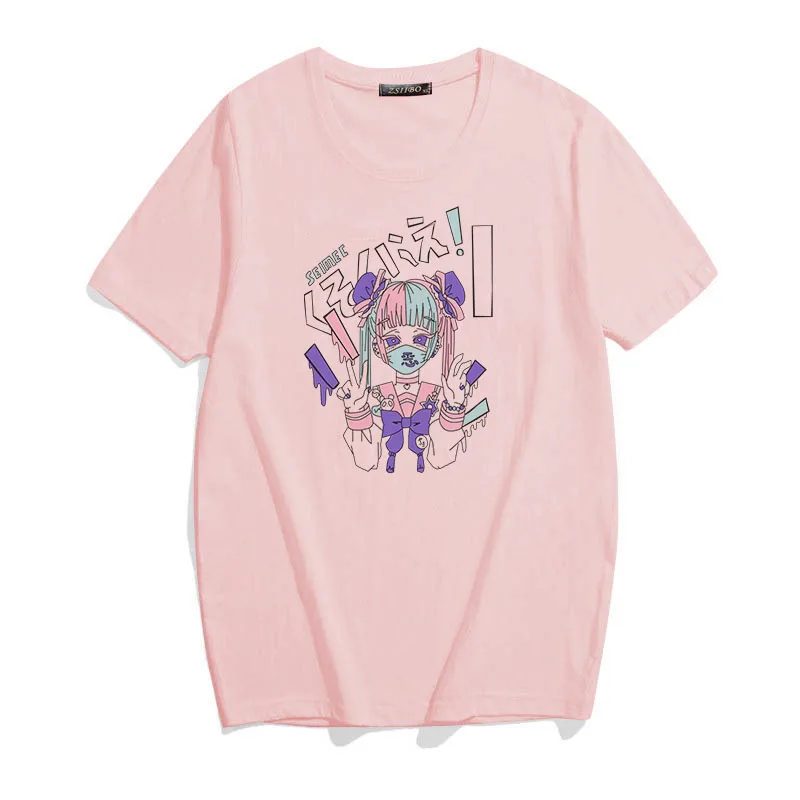 Футболка женская в японском стиле Харадзюку, мультяшная японская шк...