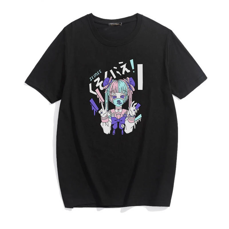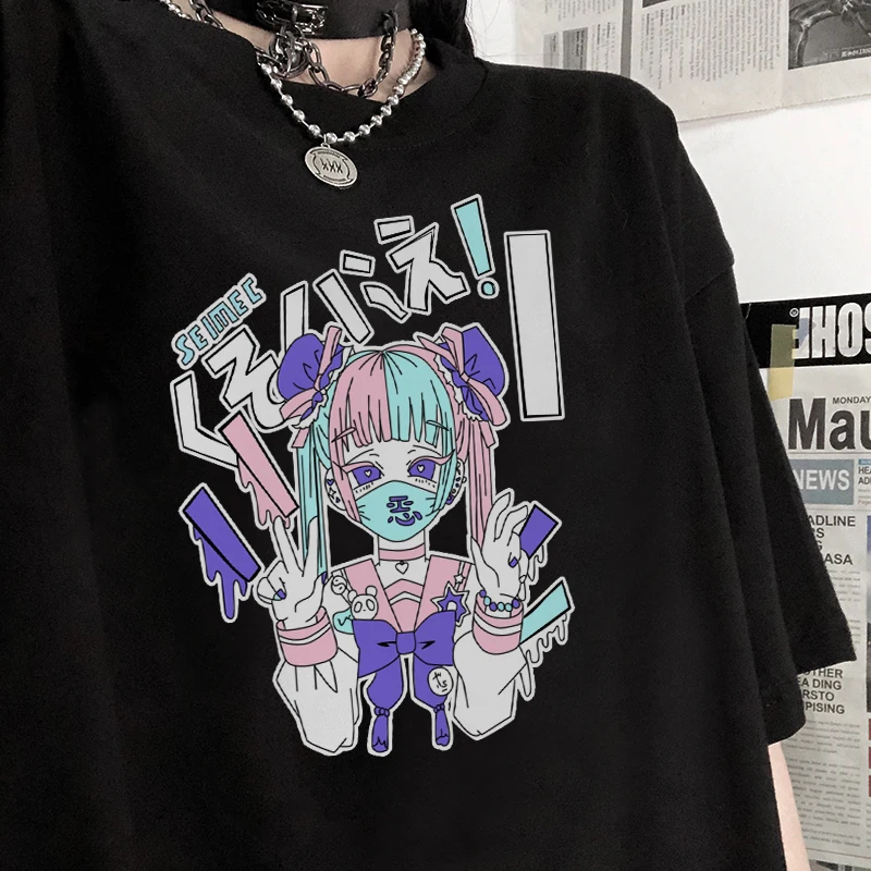 Футболка уличная Ulzzang в стиле Харадзюку, Повседневная Свободная Темная футболка в японском стиле для девушек, винтажный шикарный Забавный женский топ для лета