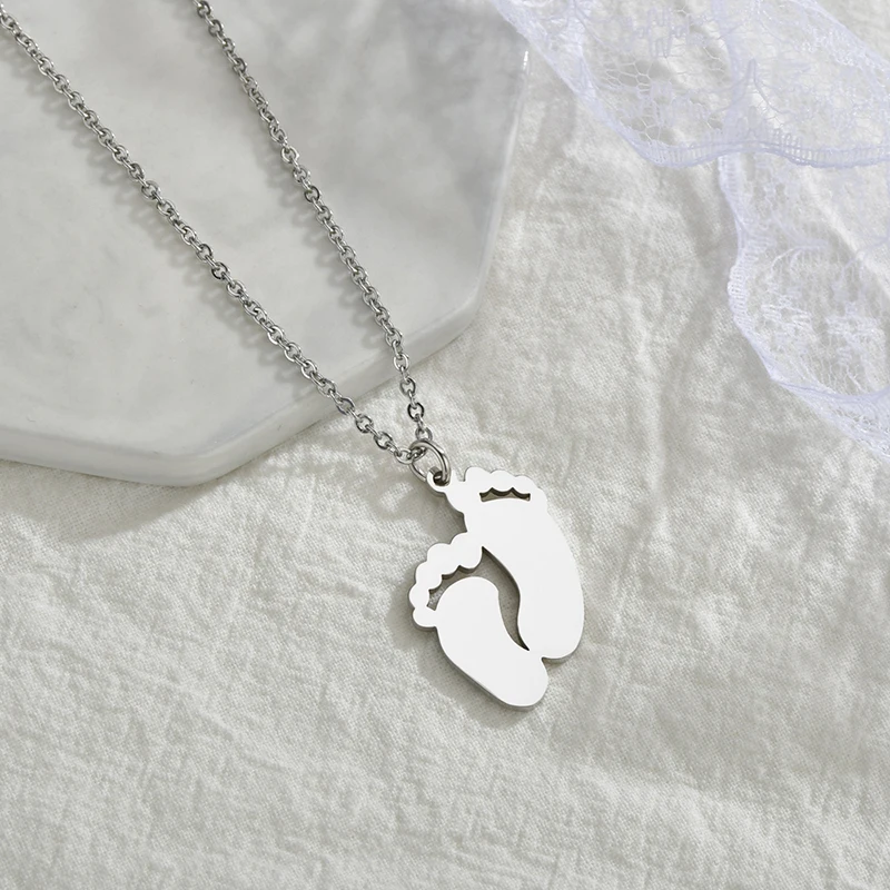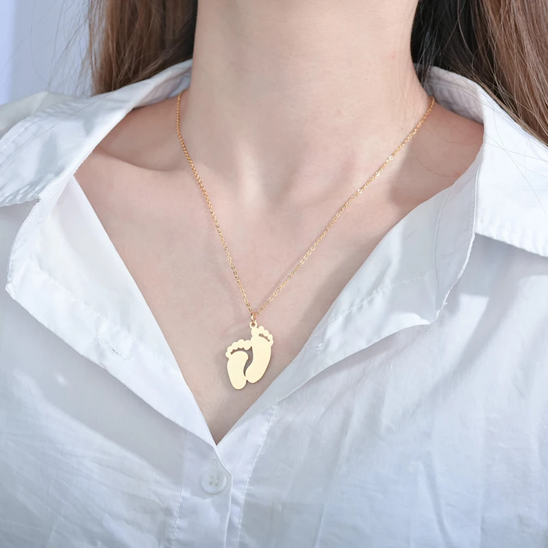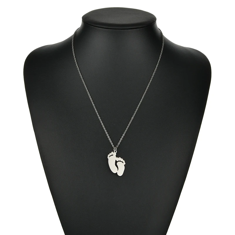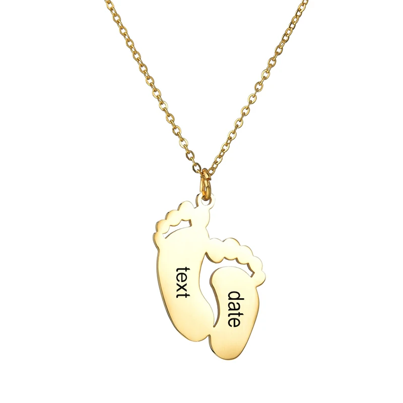 Feature/ShapeStainless Steel Custom Engraved Name Date Feet Pendant Necklace