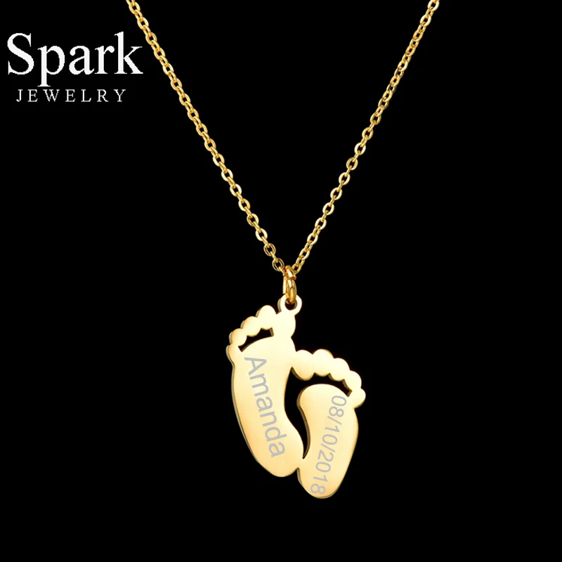 Spark, на заказ, с гравировкой, имя, дата, детские ножки, кулон, ожерелье, милая нержавеющая сталь, отпечаток ноги, ожерелья для женщин, детей, подарок на день рождения
