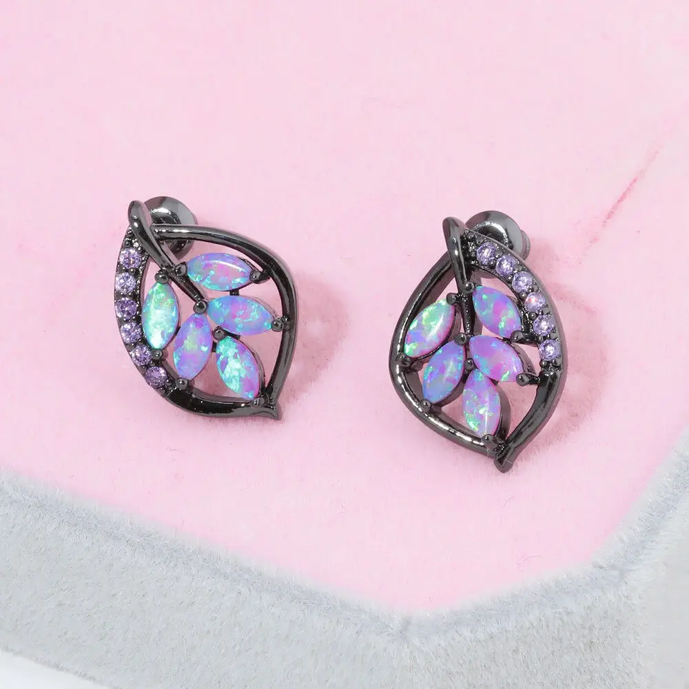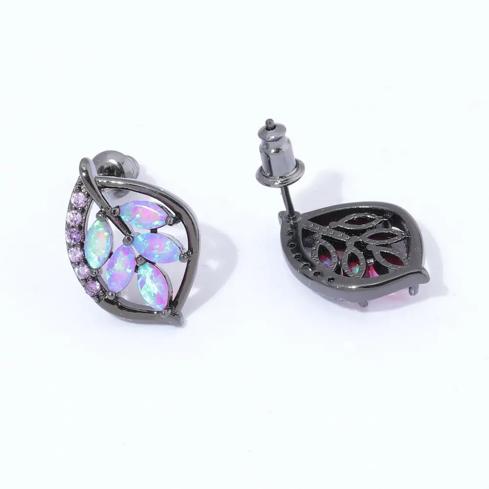 Женские опаловые серьги-гвоздики CiNily Fire, черный золотистый цве...