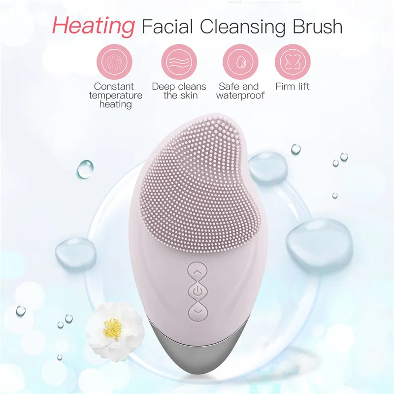 Греющая щетка для чистки лица, массажер для лица, Ультразвуковая электрическая Омолаживающая щетка для умывания, вибрация очиститель пор кожи