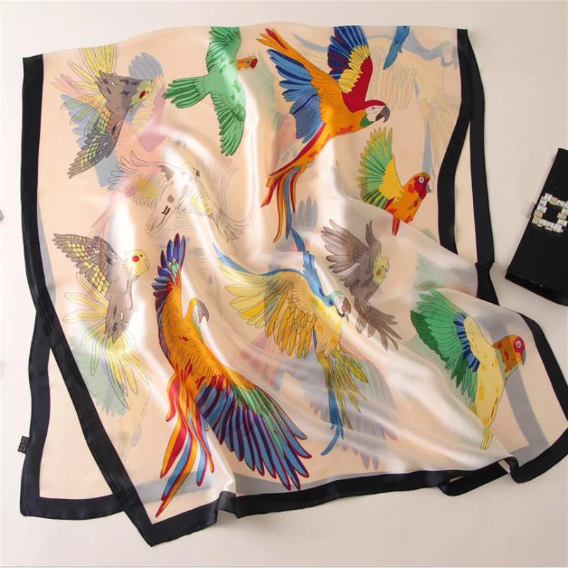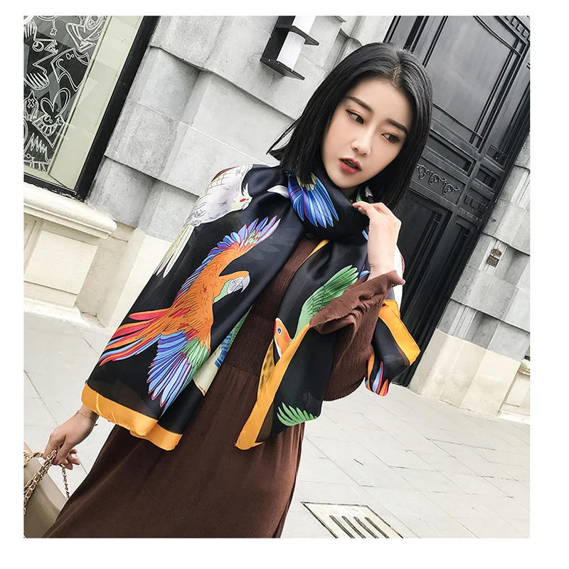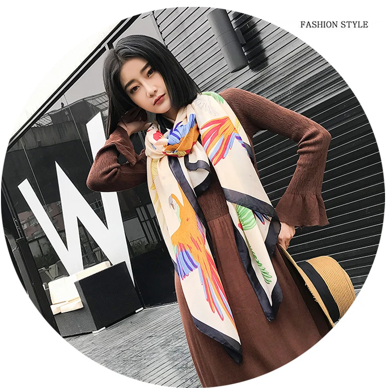 Шелковый шарф с птицами, Пашмина, новый женский роскошный бренд, с принтом попугаев, мягкий платок, женские шарфы, из натурального турецкого твила
