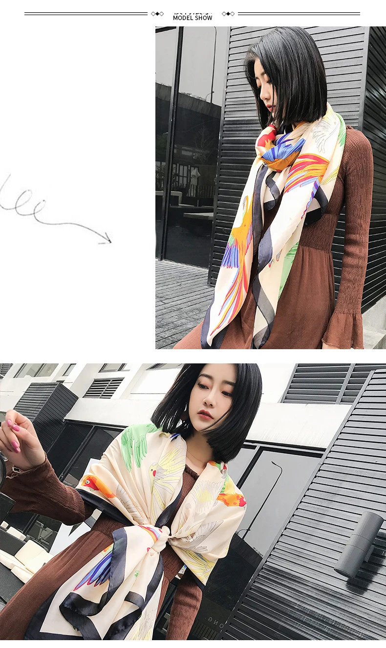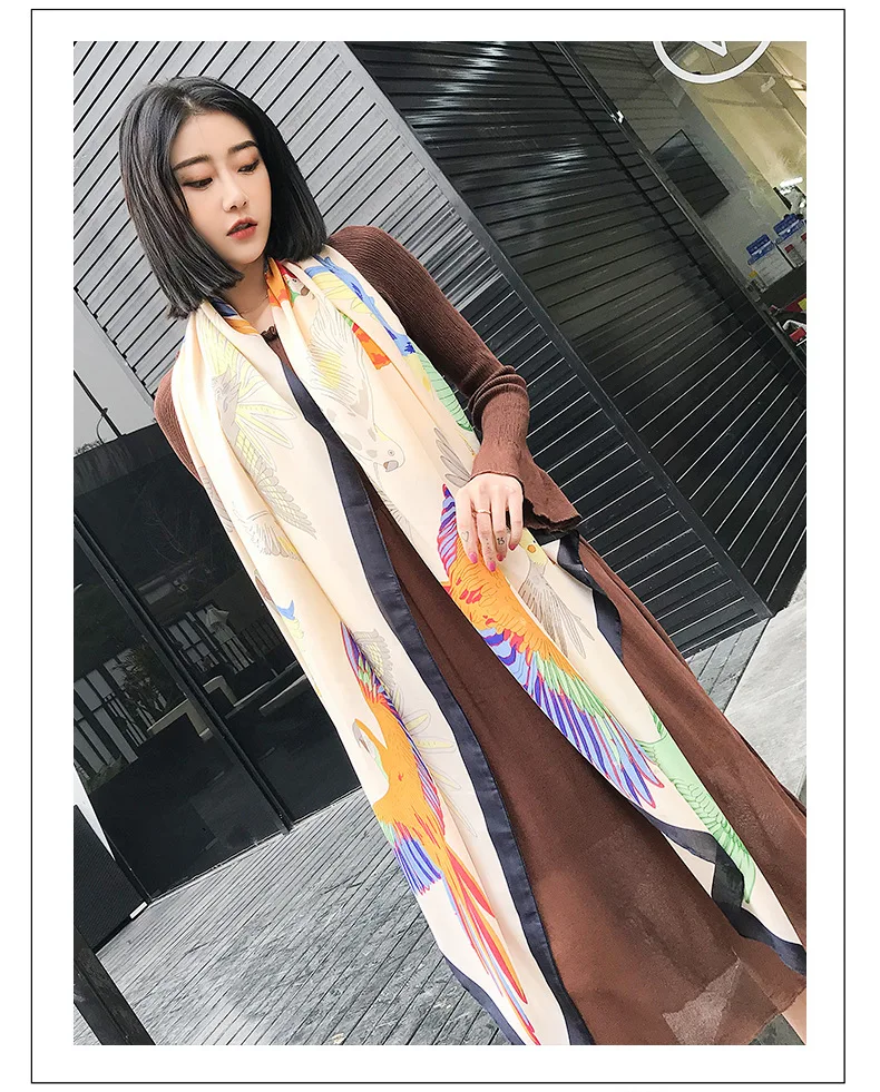 2020 Новый женский шелковый шарф с птицами, Солнцезащитный пляжный шарф из пашмины