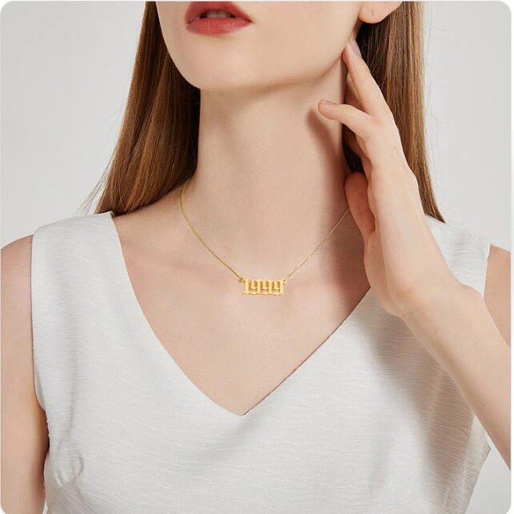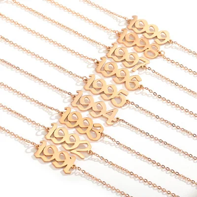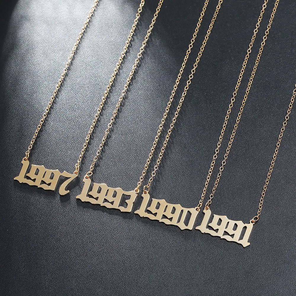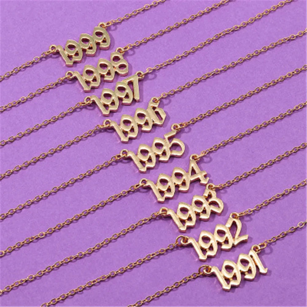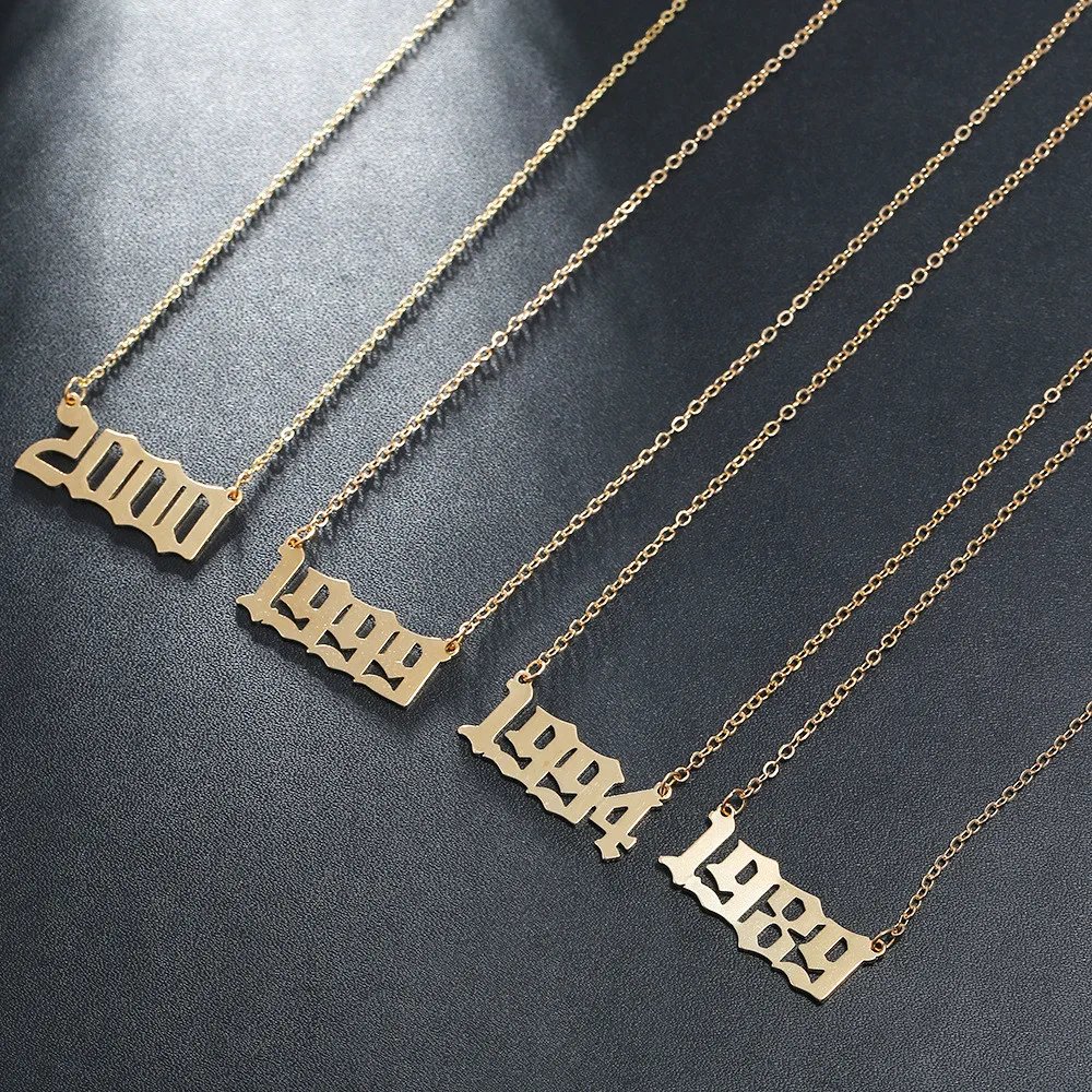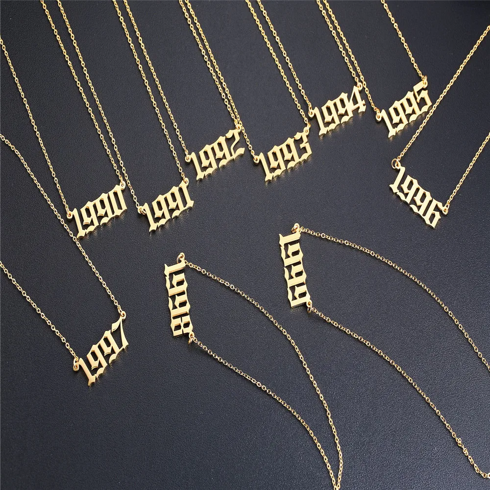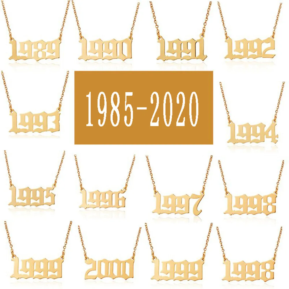 Ожерелье QIAMNI из нержавеющей стали для женщин и мужчин, колье с подвеской в виде чисел и даты, Ювелирное Украшение в памятный подарок, 1985-2020